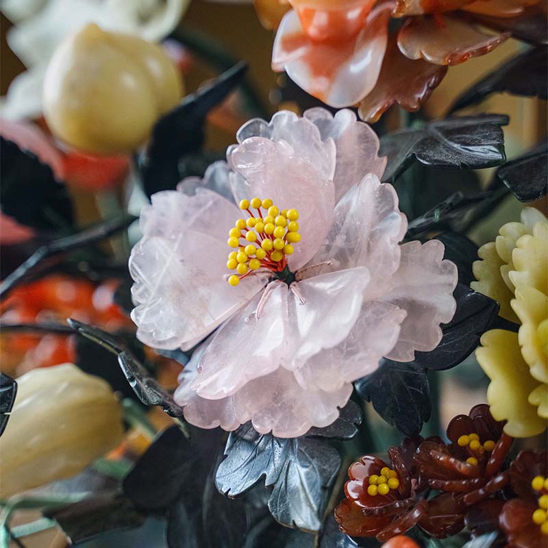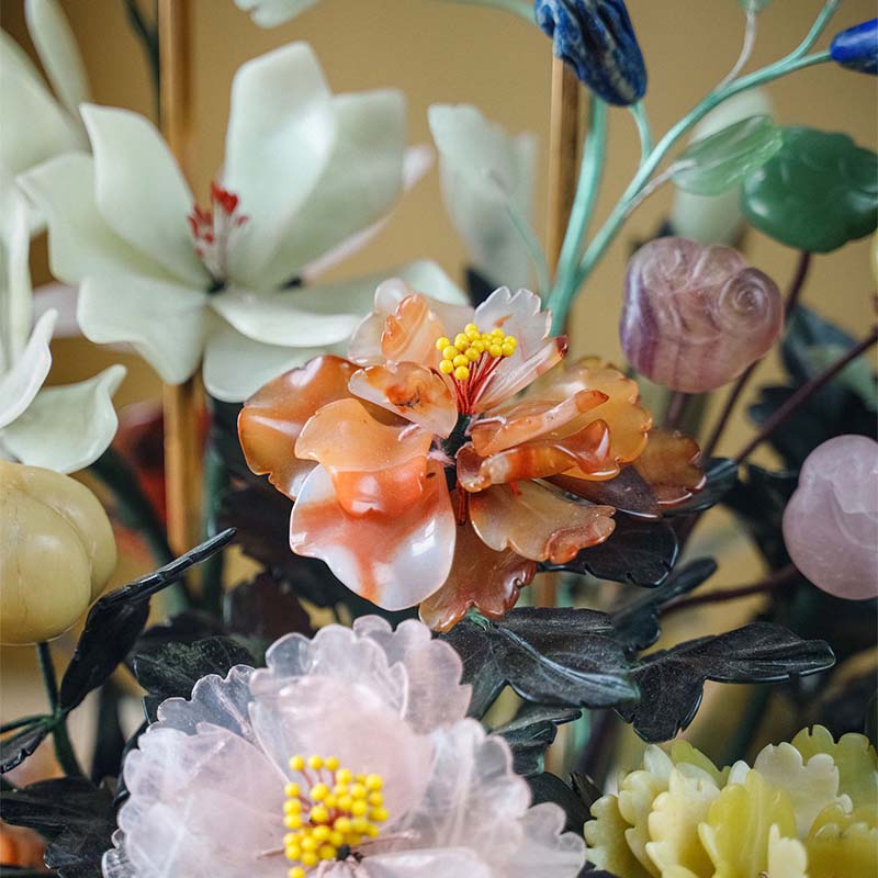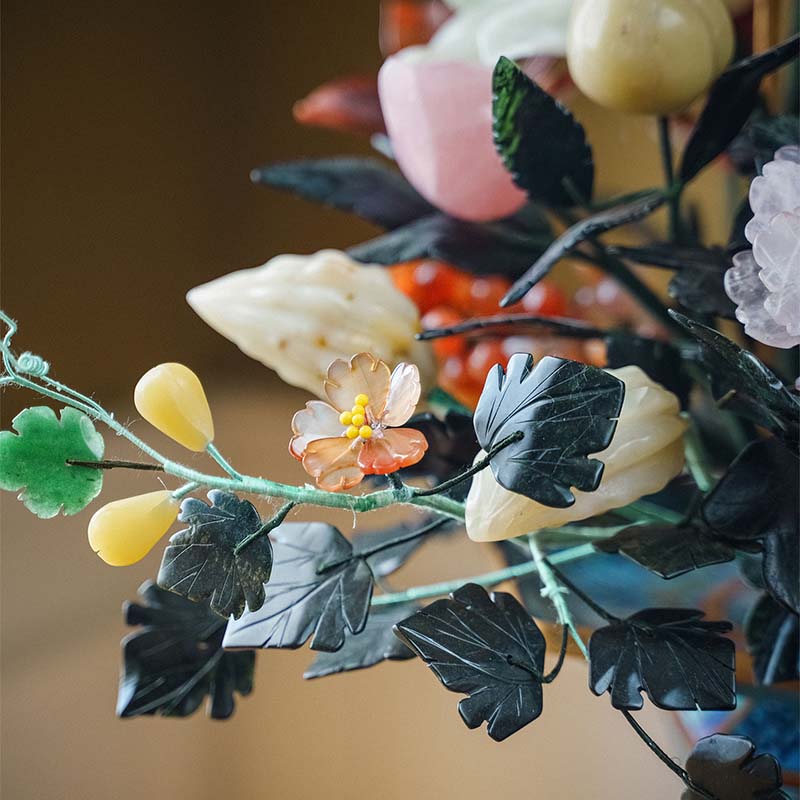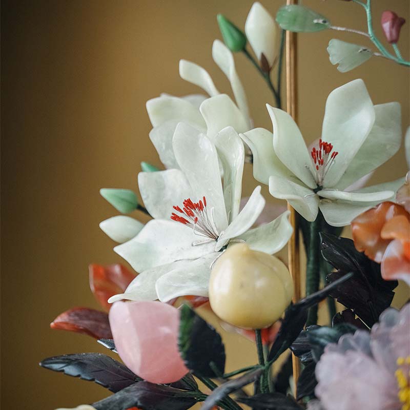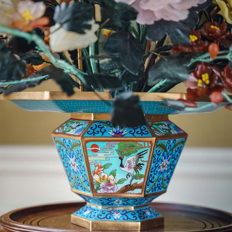 中国出品花篮造型飞鹤与宝相花纹景泰蓝盆装饰「玉堂富贵」珍宝像生盆景