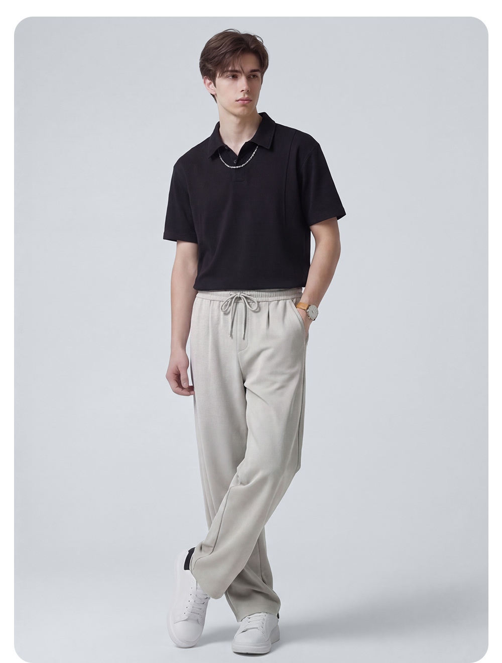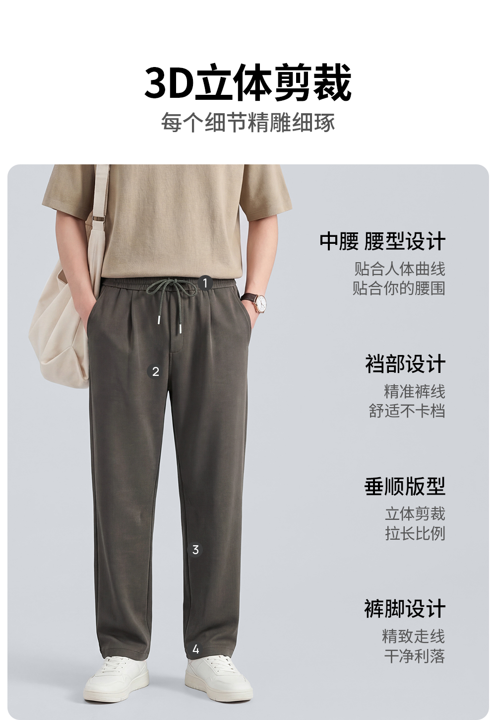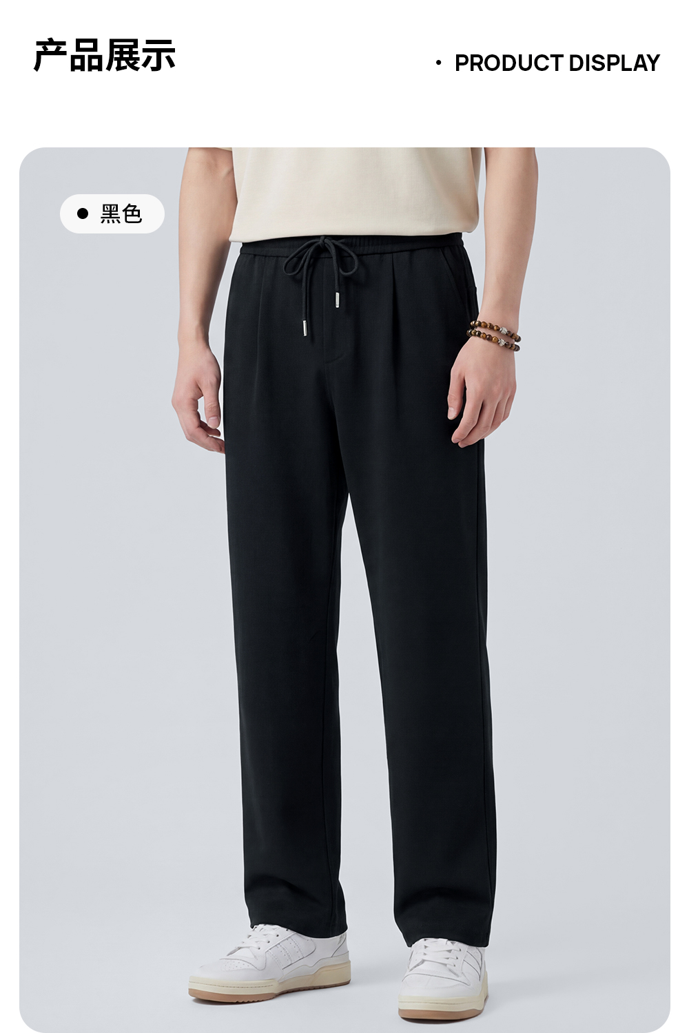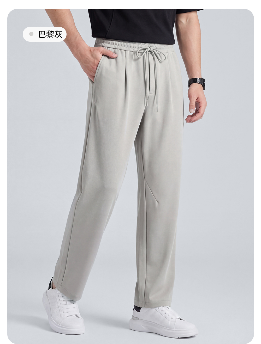 圣得西直筒休闲裤男2025新款纯色设计感弹力垂顺西裤子