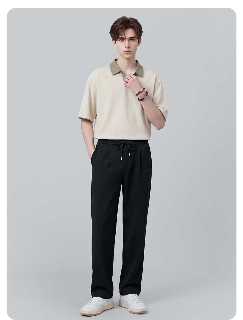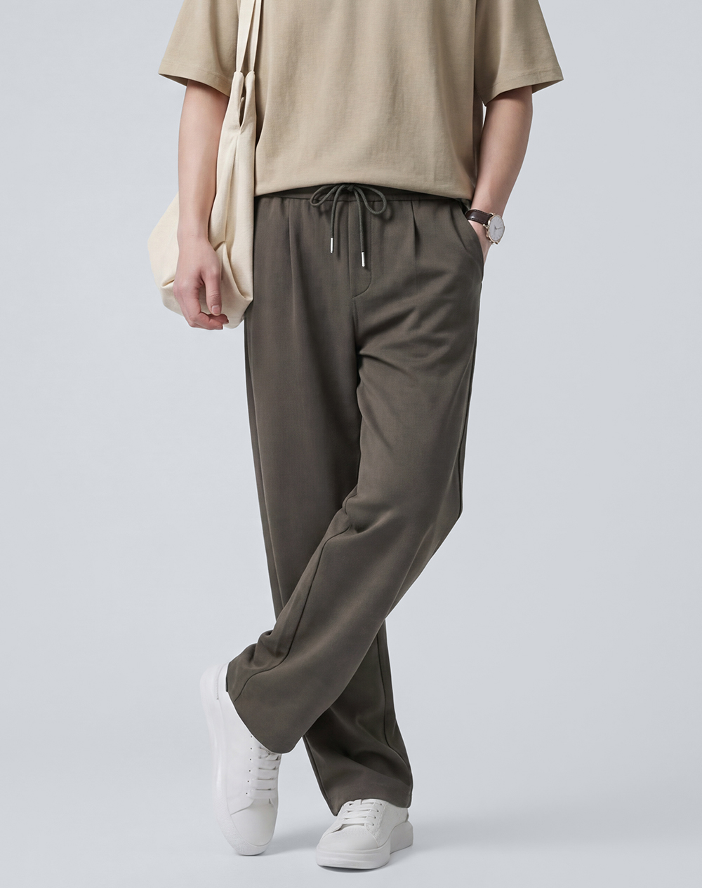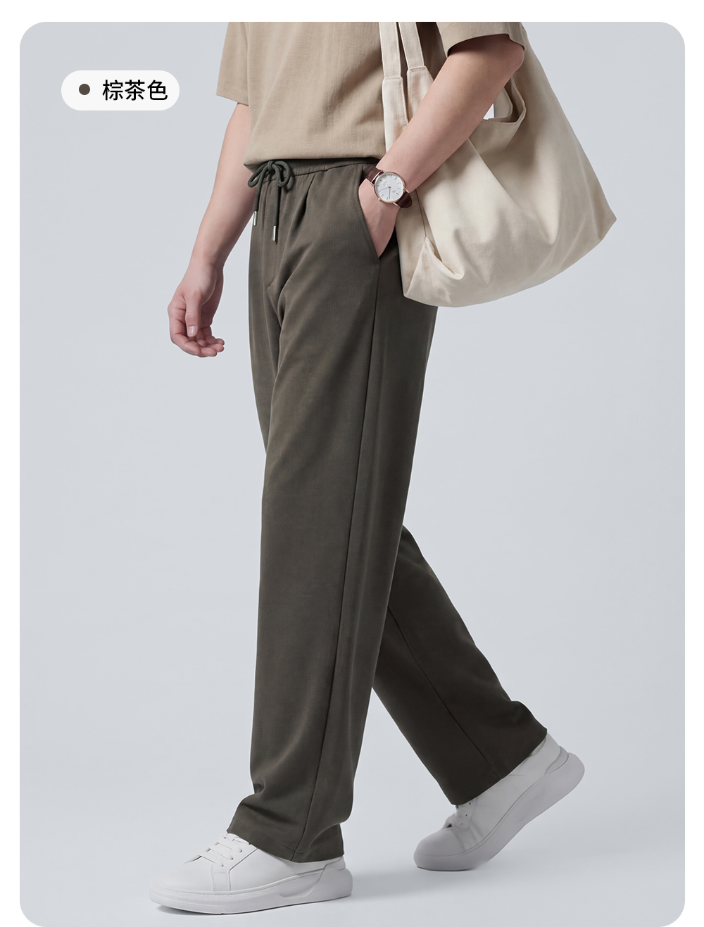 【含莱赛尔】圣得西松紧系带休闲裤男2026新款春季运动休闲直筒裤