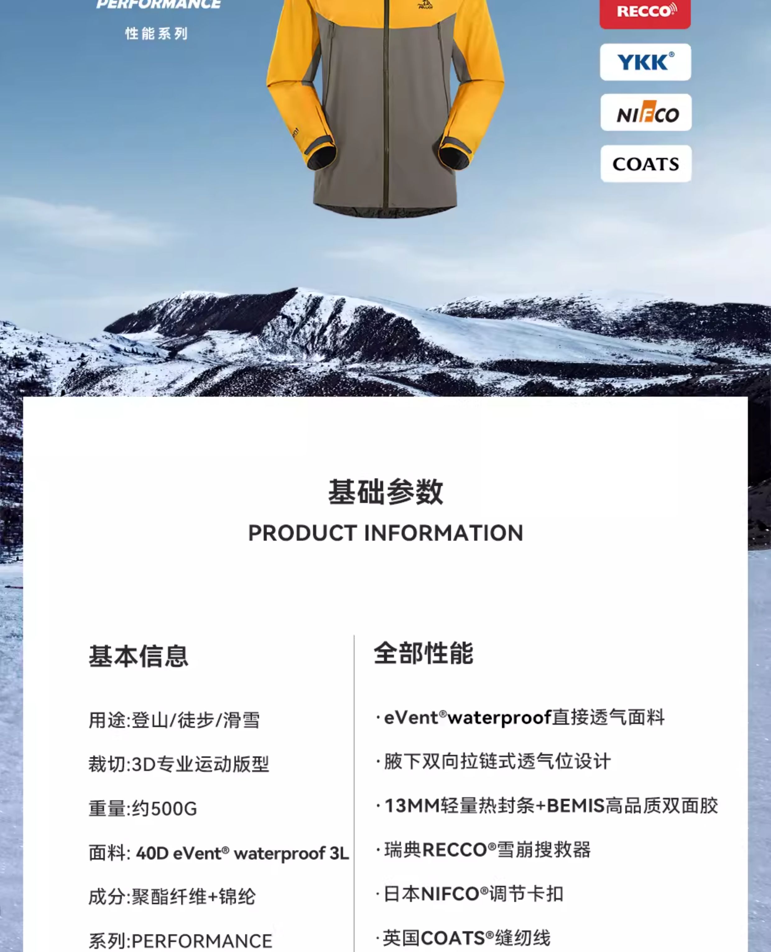 【北极星2.0】伯希和户外全天候硬壳冲锋衣eVent专业级徒步登山服