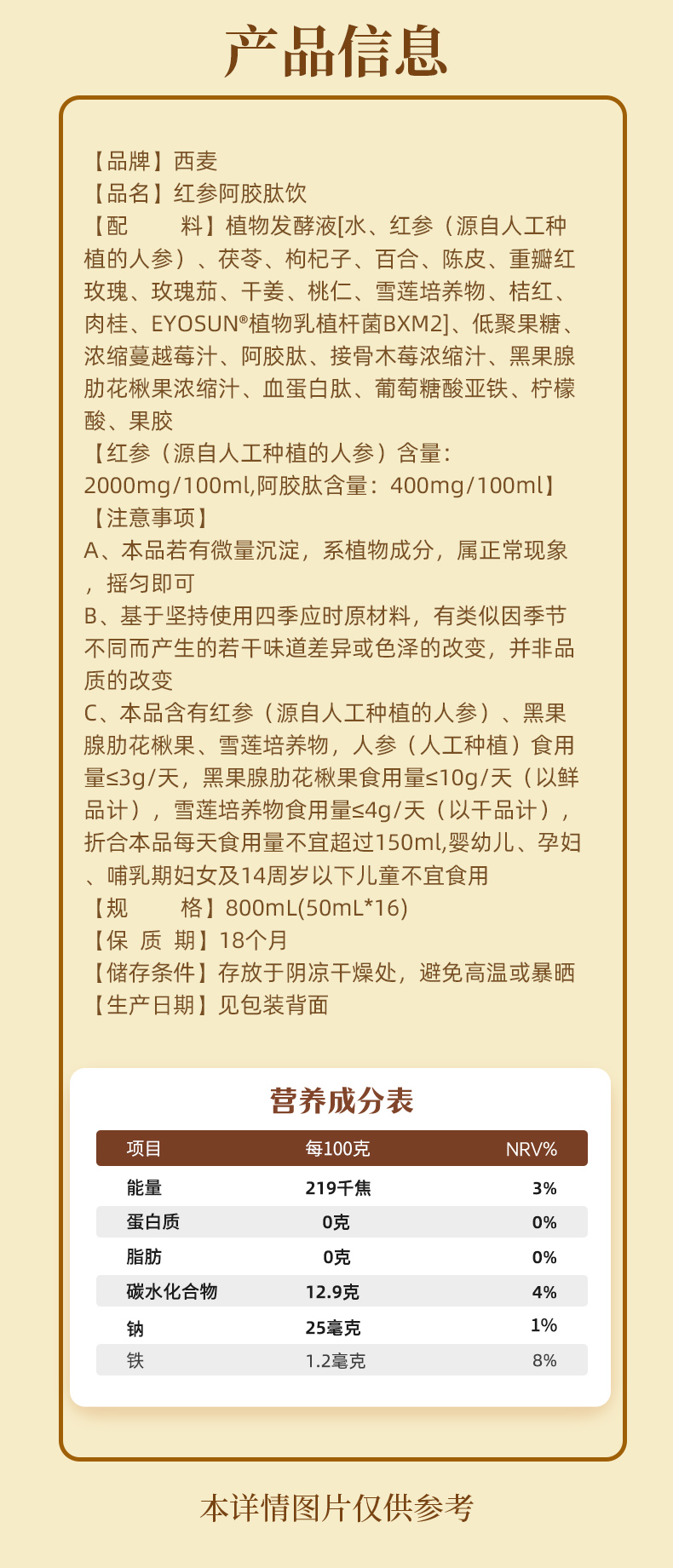 红参阿胶肽饮(礼盒)800ml(50ml*16)