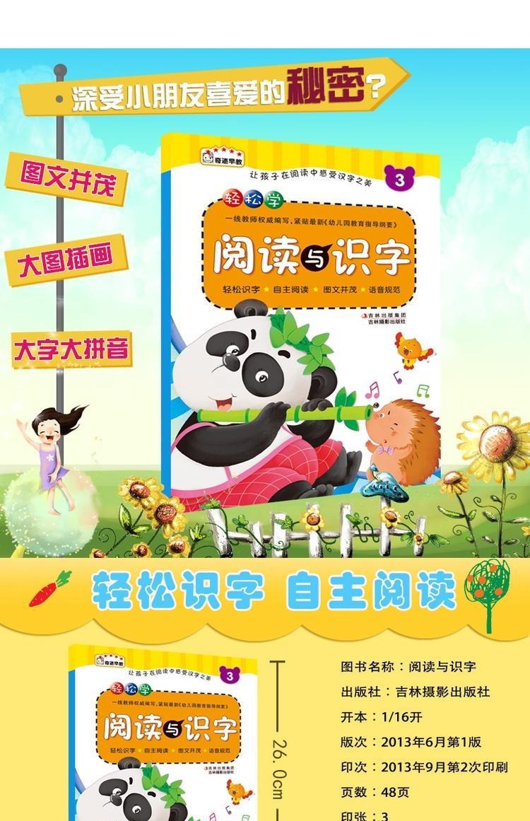 轻松学阅读与识字3 3-6岁幼儿园学前教育幼升小教材早期阅读与识字 彩图注音识字教材儿童幼小衔接练习儿童认字书