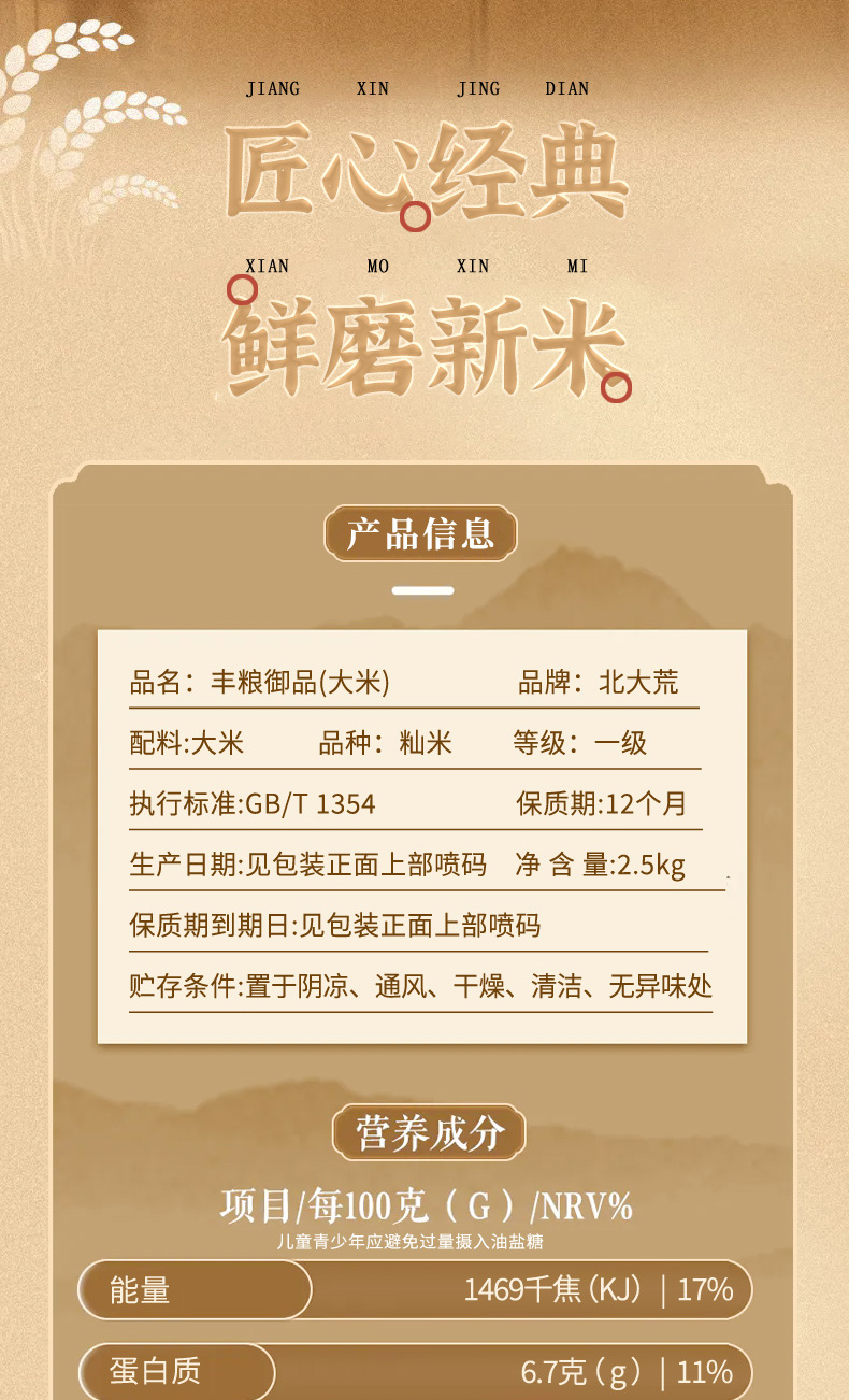 【北大荒】乡谷坊 丰粮御品大米2.5kg
