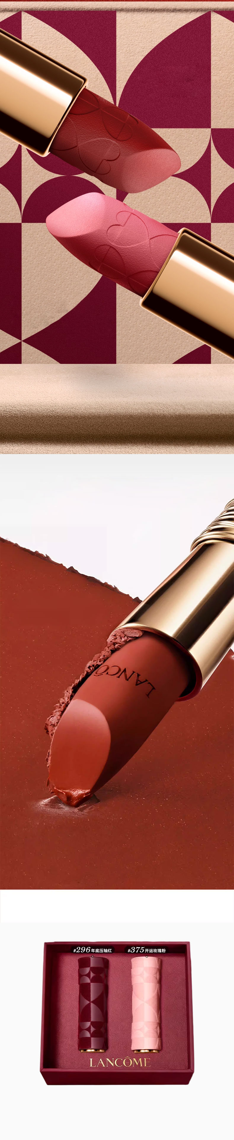 2026情人节限定【送礼袋】兰蔻「双面绝色」口红两件套限定礼盒(3.4g*2支) 香港直邮