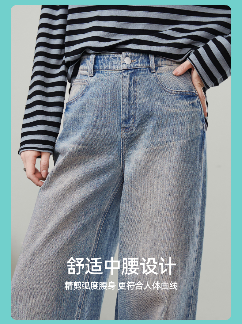 【秋新品-美式-阔腿裤】逸阳复古美式宽松显瘦阔腿牛仔裤子5893
