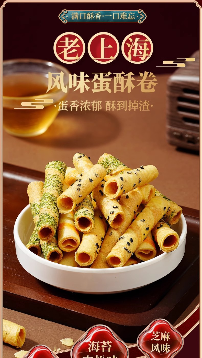 【19.9到手一整箱❗️老上海蛋酥卷】传统工艺匠心制作,老上海风味,老上海芝麻鸡蛋卷手工香酥脆饼干传统糕点早餐下午茶零食