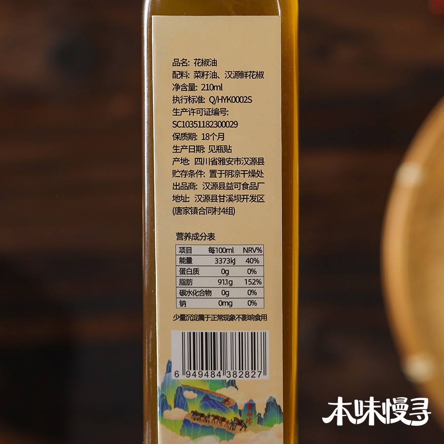 正宗汉源花椒油,油菜籽调香,从舌尖麻到舌根。火锅、饺子,快乐的聚餐不可或缺的花椒油。清透色泽,微微沉淀,是手作人对食物的虔诚与尊重。