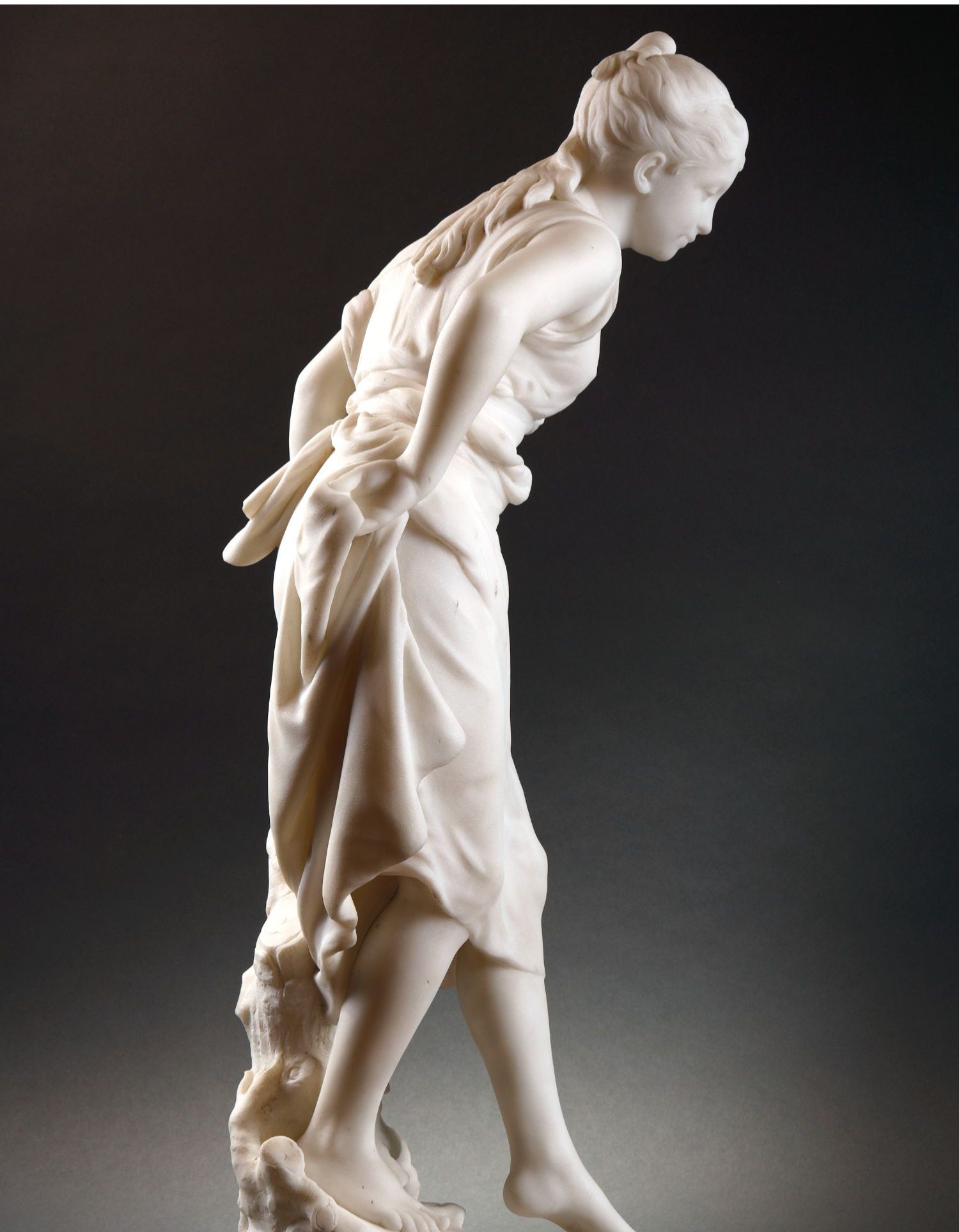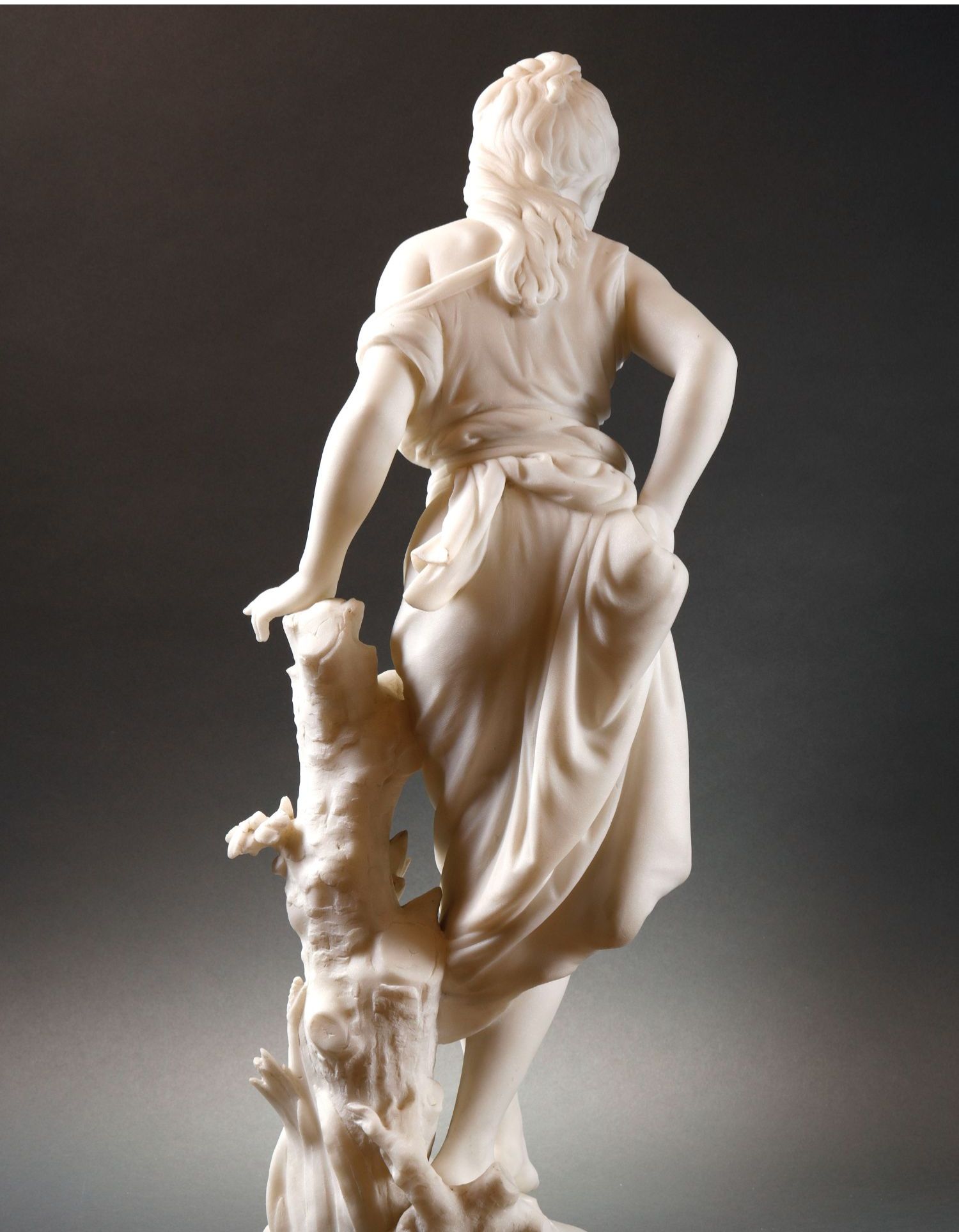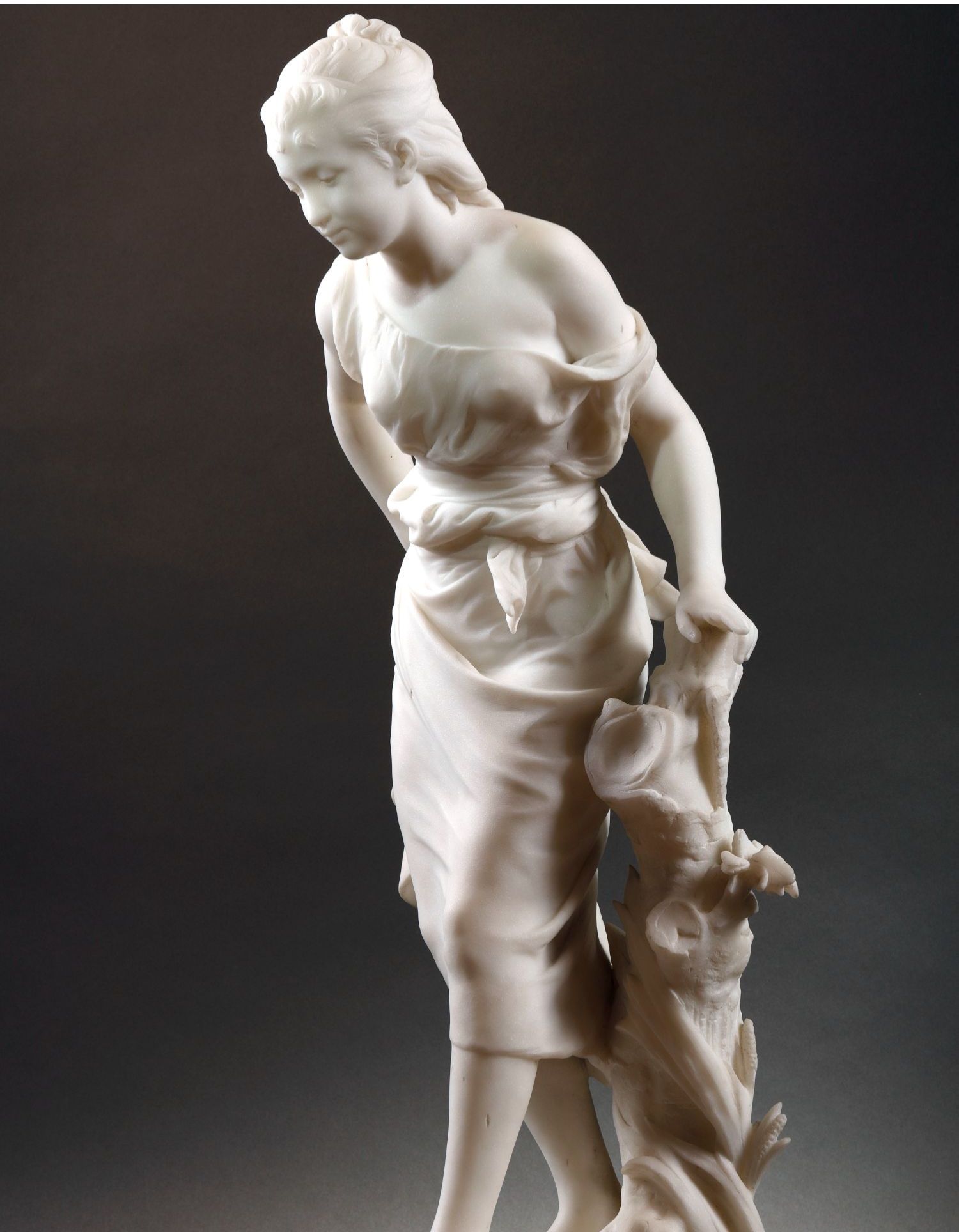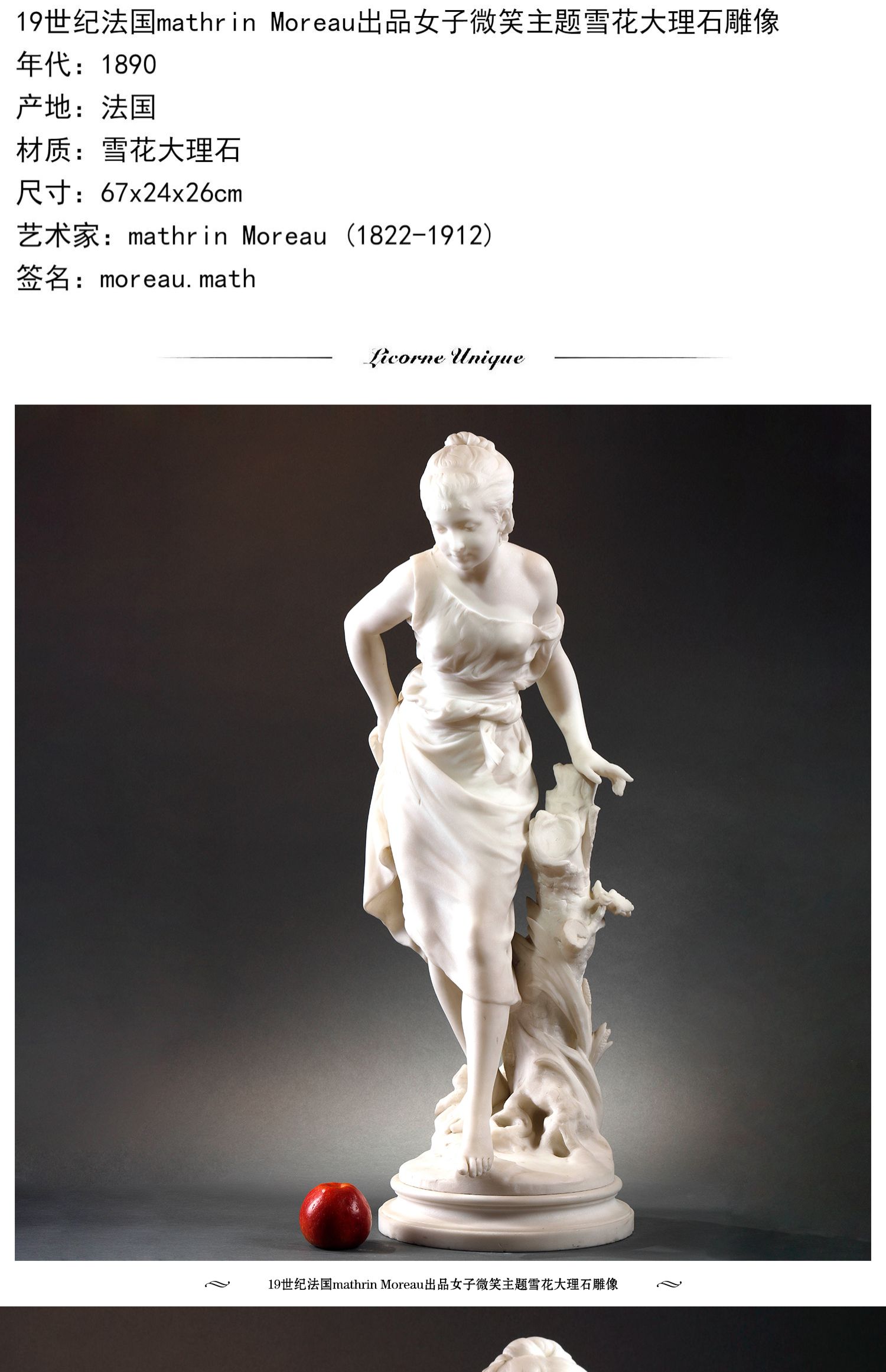 独角鹿西洋古董法国mathrin Moreau女子微笑主题雪花大理石雕像
