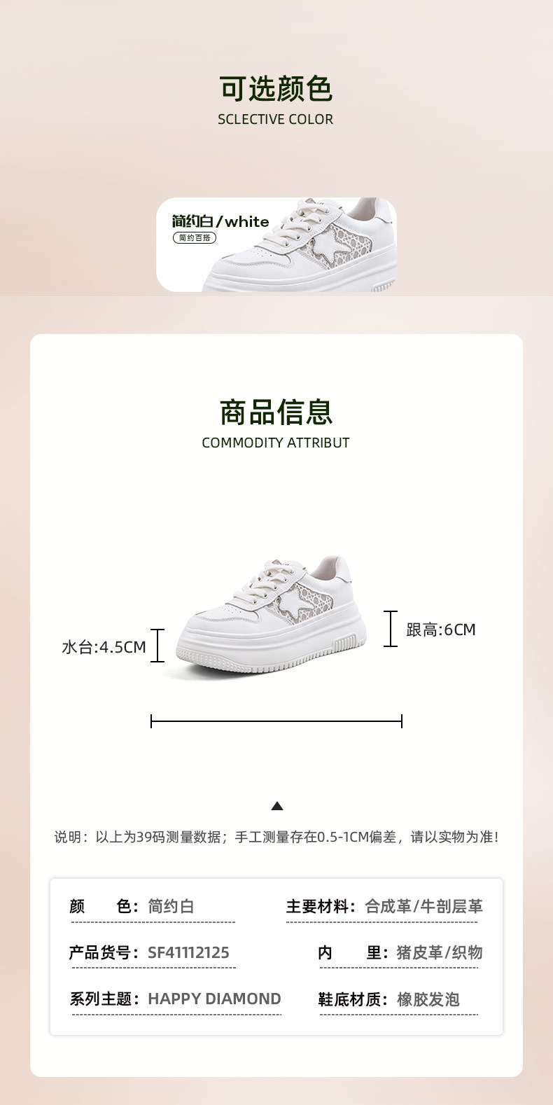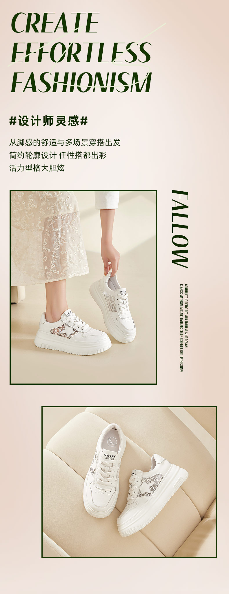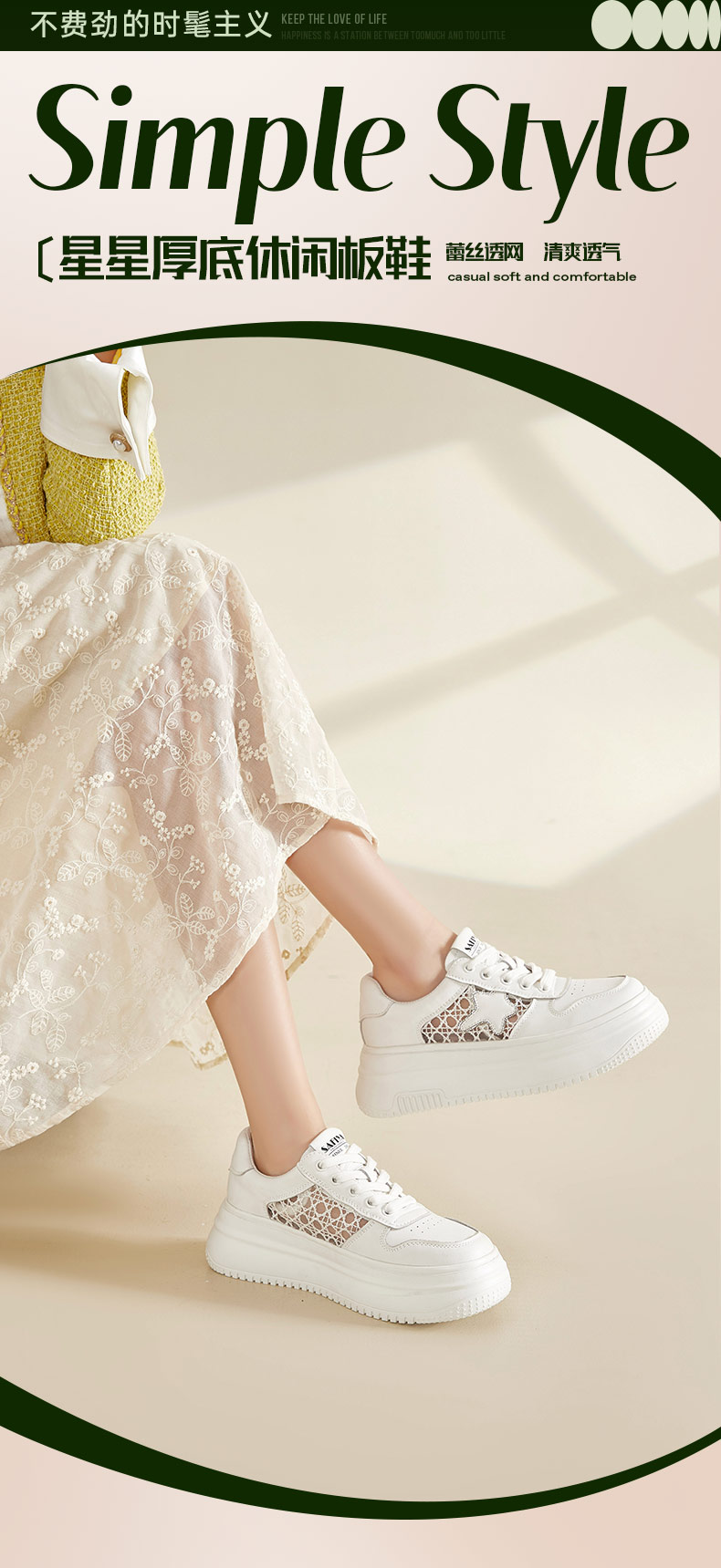 Safiya/索菲娅2024春季潮流星星厚底透气网面运动休闲风板鞋 SF41112125