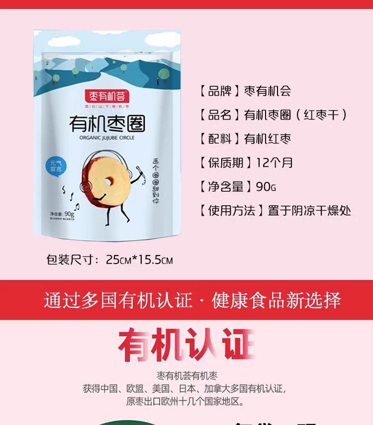 臻如意枣有机荟新疆和田一级有机枣圈90g即食孕妇级零食泡茶干吃
