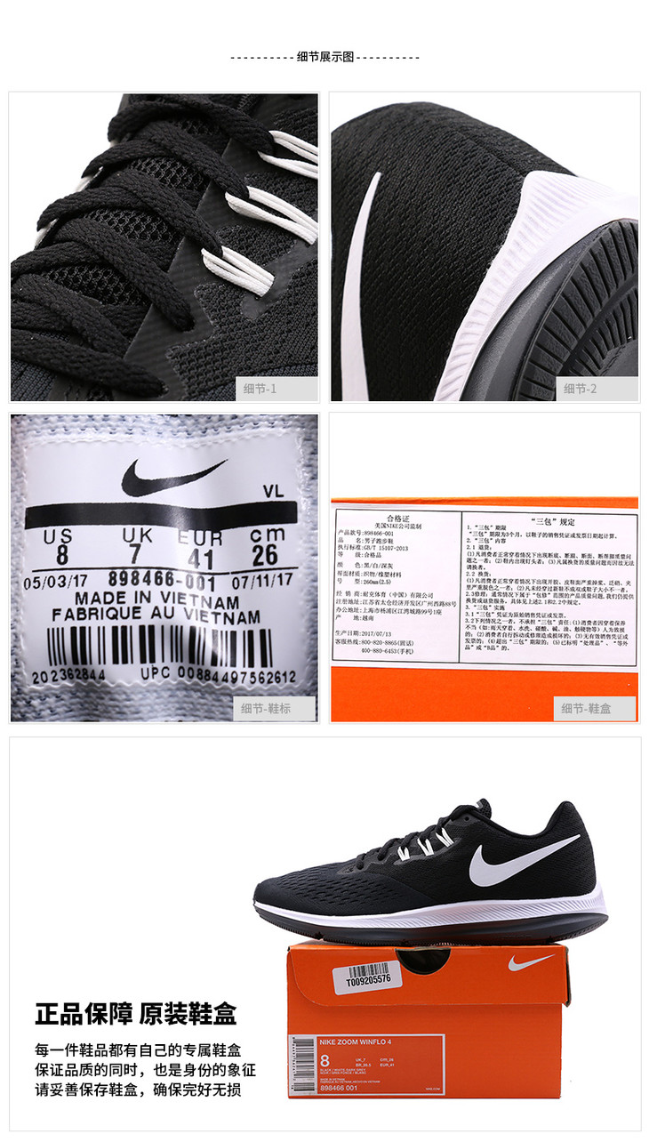Nike跑步鞋男子新款ZOOM气垫缓震休闲运动鞋898466-001