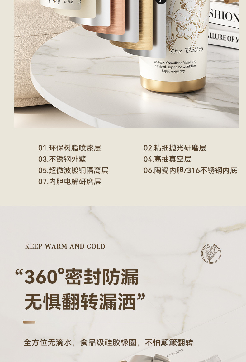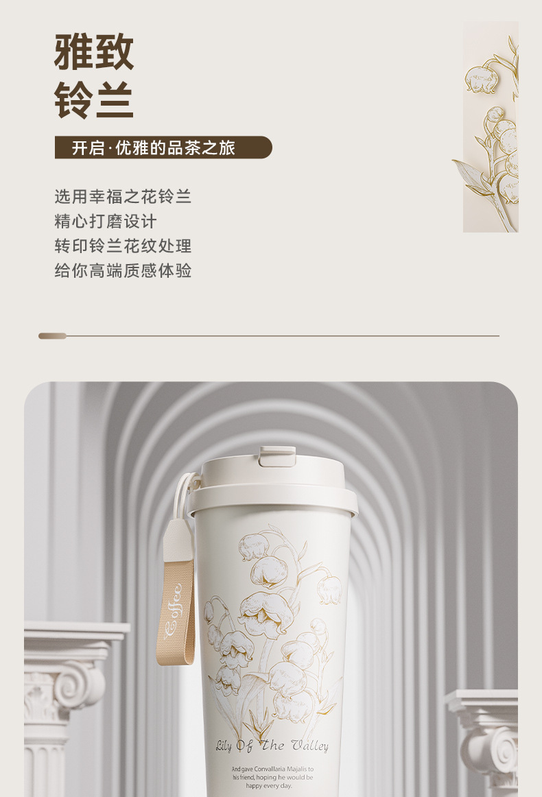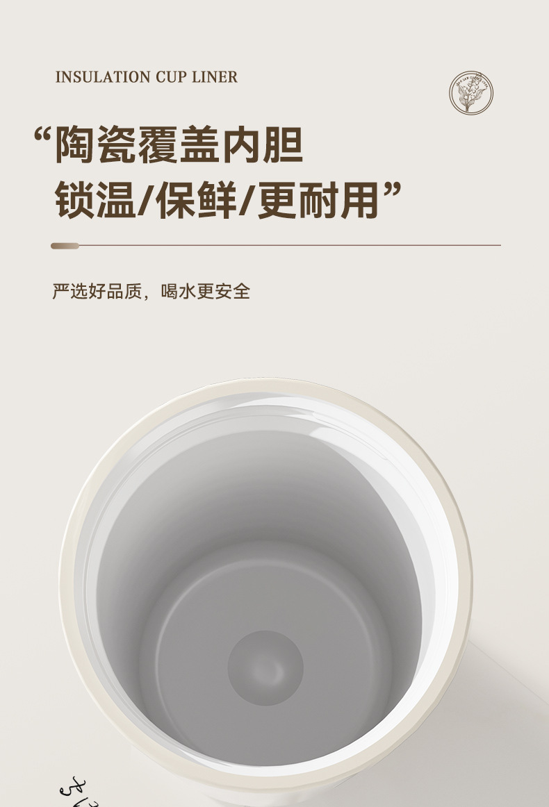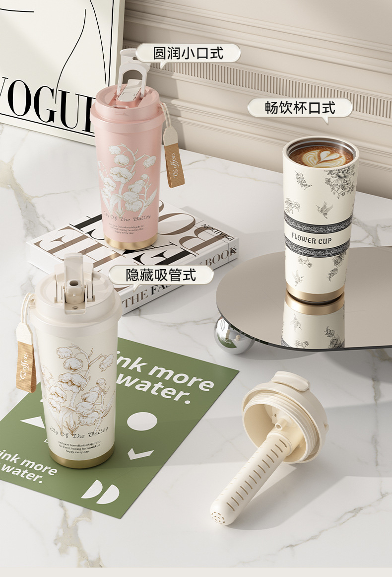 「高颜值!花语系列保温杯」大容量男女陶瓷内胆咖啡杯双饮吸管水杯316不锈钢杯餐饮用具