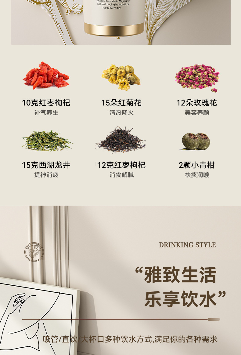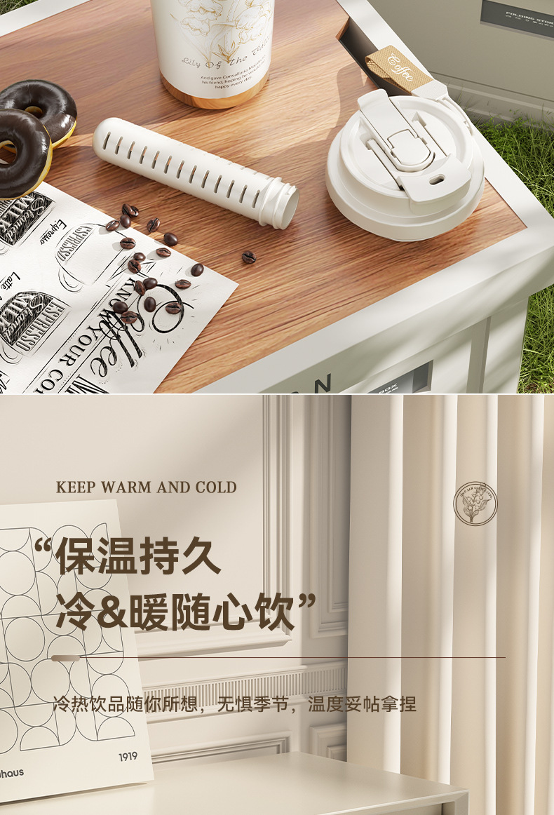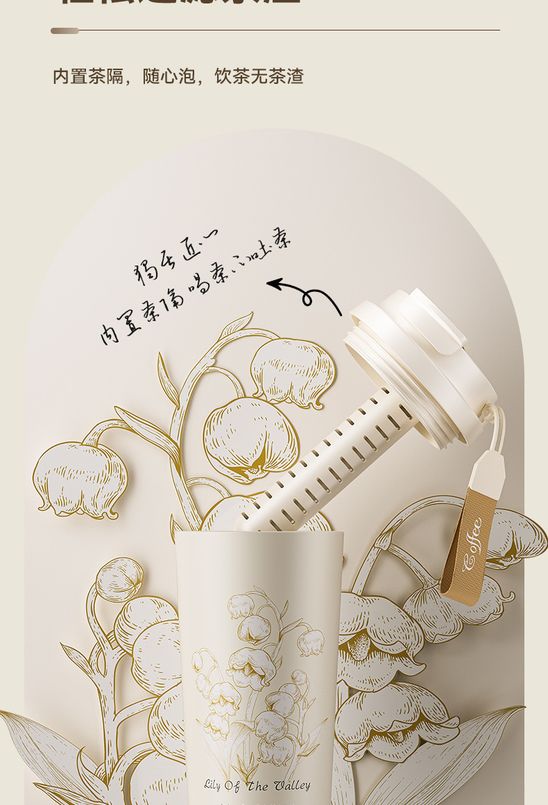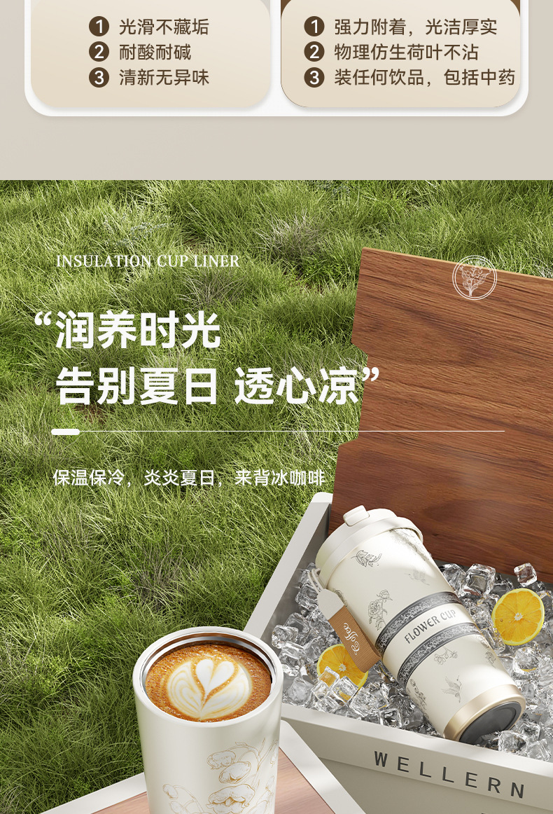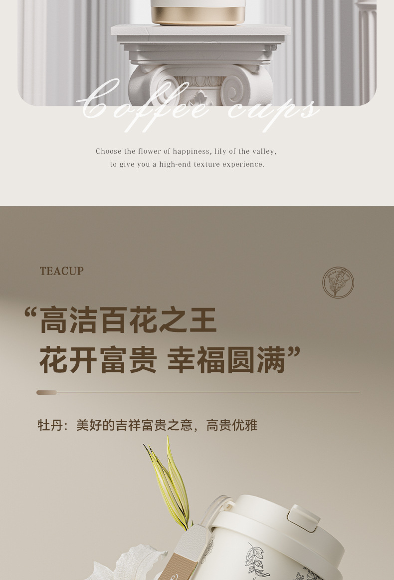 「高颜值!花语系列保温杯」大容量男女陶瓷内胆咖啡杯双饮吸管水杯316不锈钢杯餐饮用具