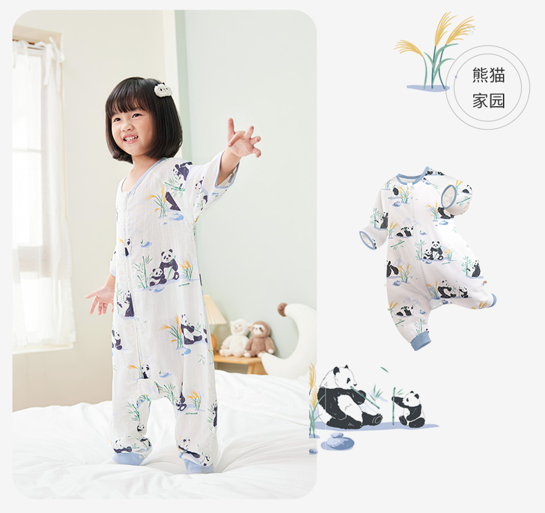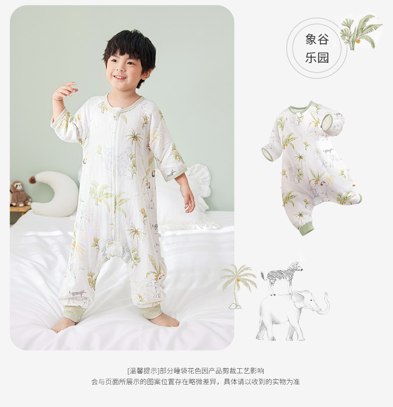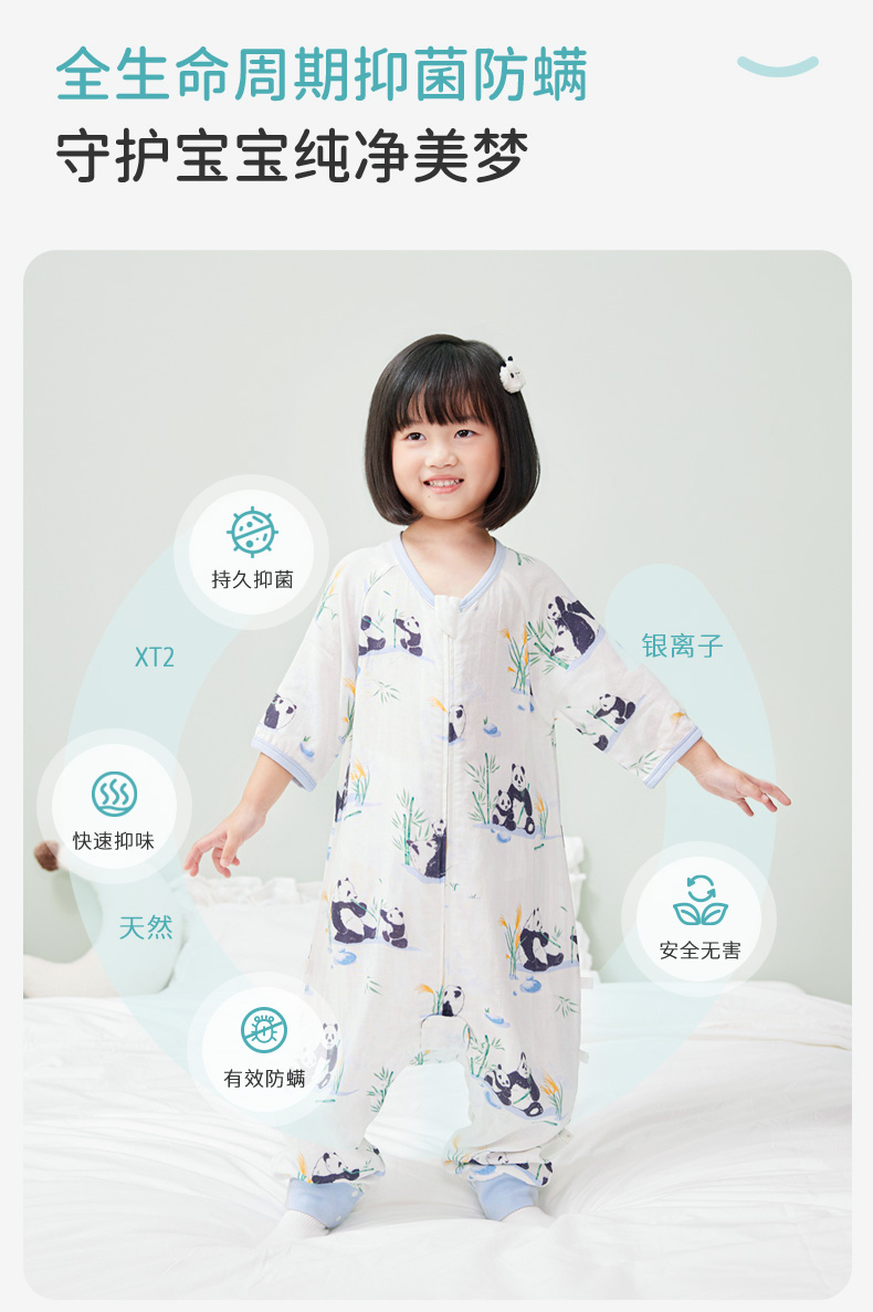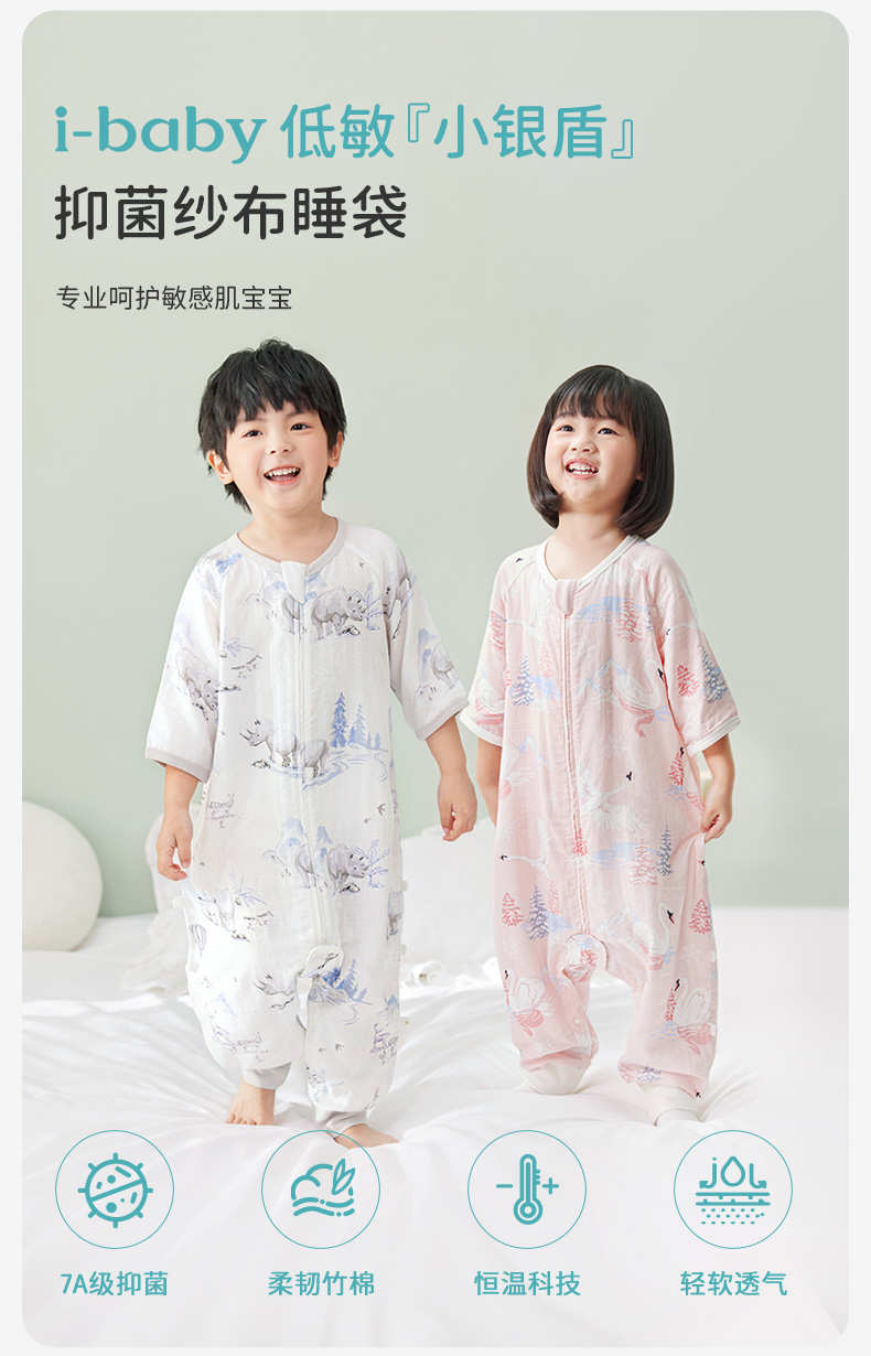 i-baby/英伦宝贝小银盾抑菌防螨低敏双层纱布恒温分腿睡袋 宝宝防踢被春夏睡衣儿童分腿睡袋