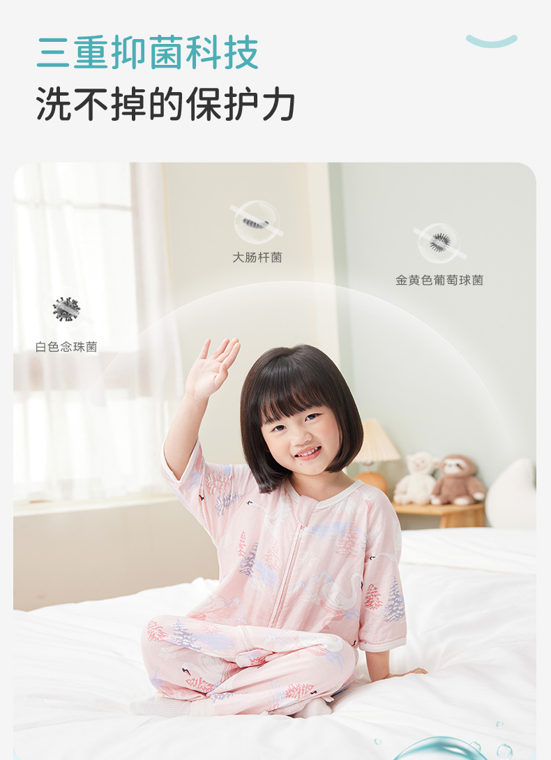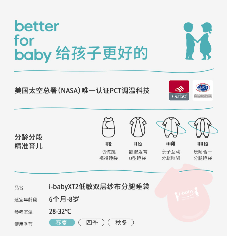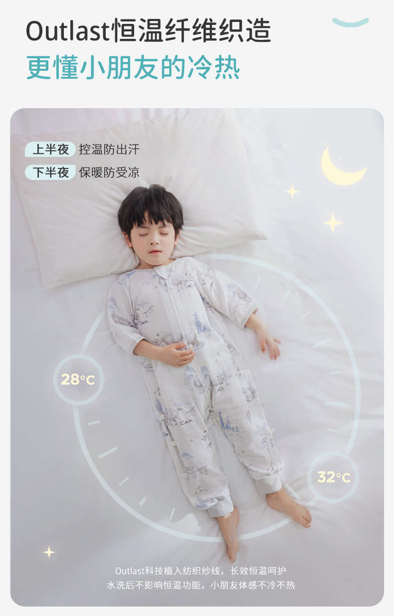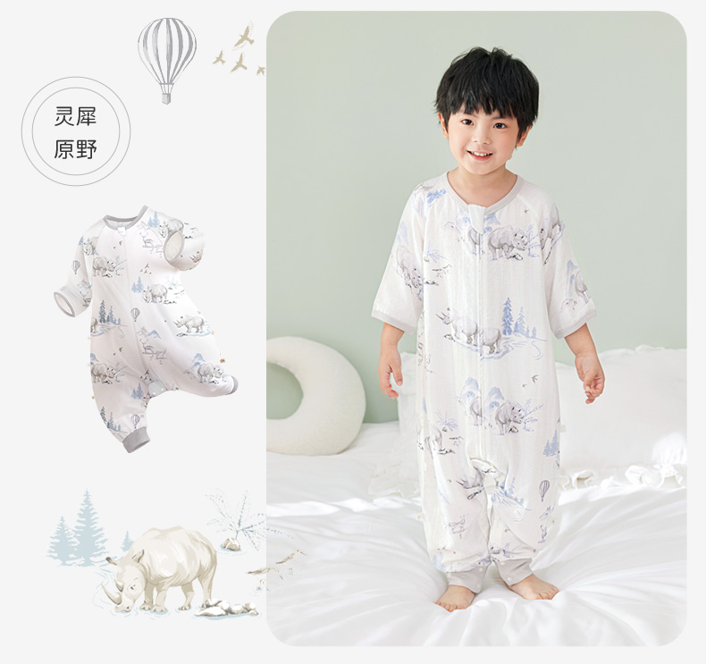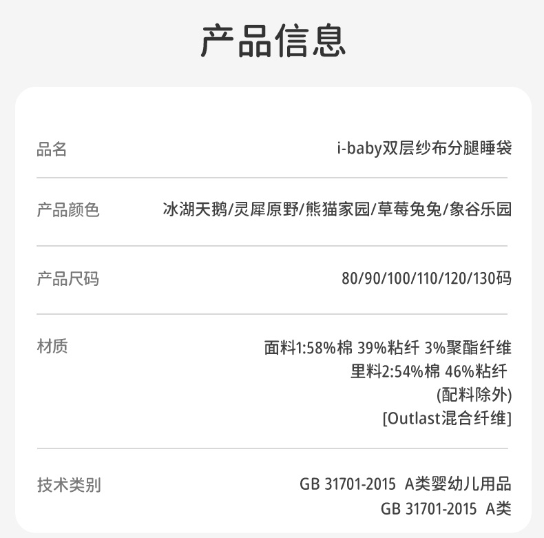 i-baby/英伦宝贝小银盾抑菌防螨低敏双层纱布恒温分腿睡袋 宝宝防踢被春夏睡衣儿童分腿睡袋