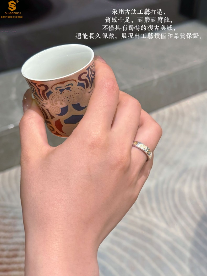 【香港周六福黄金钻石首饰】内心经招财猫平安喜乐开运情侣古法K银戒指(开口可调节) 商品图4
