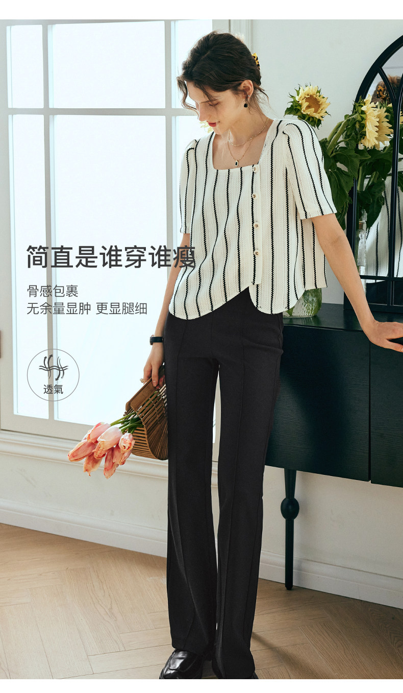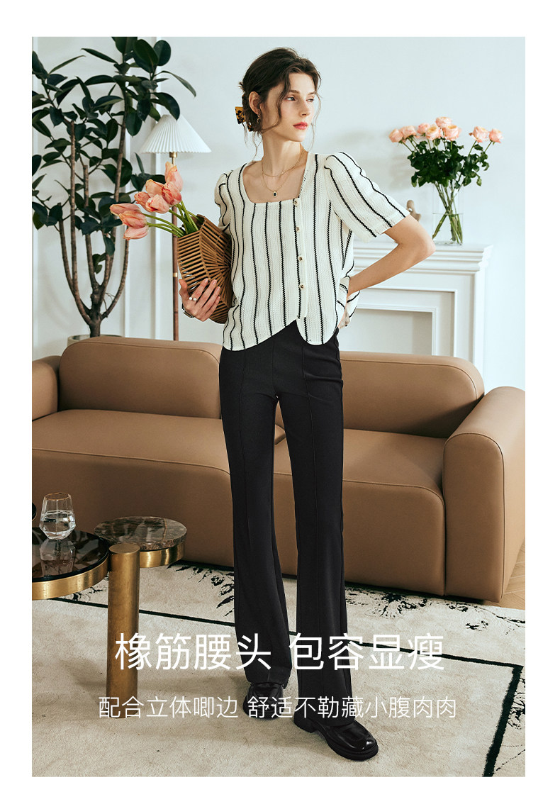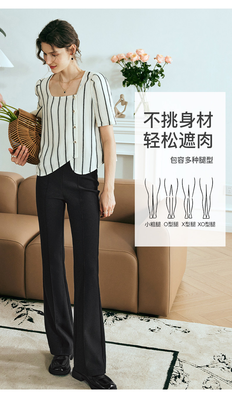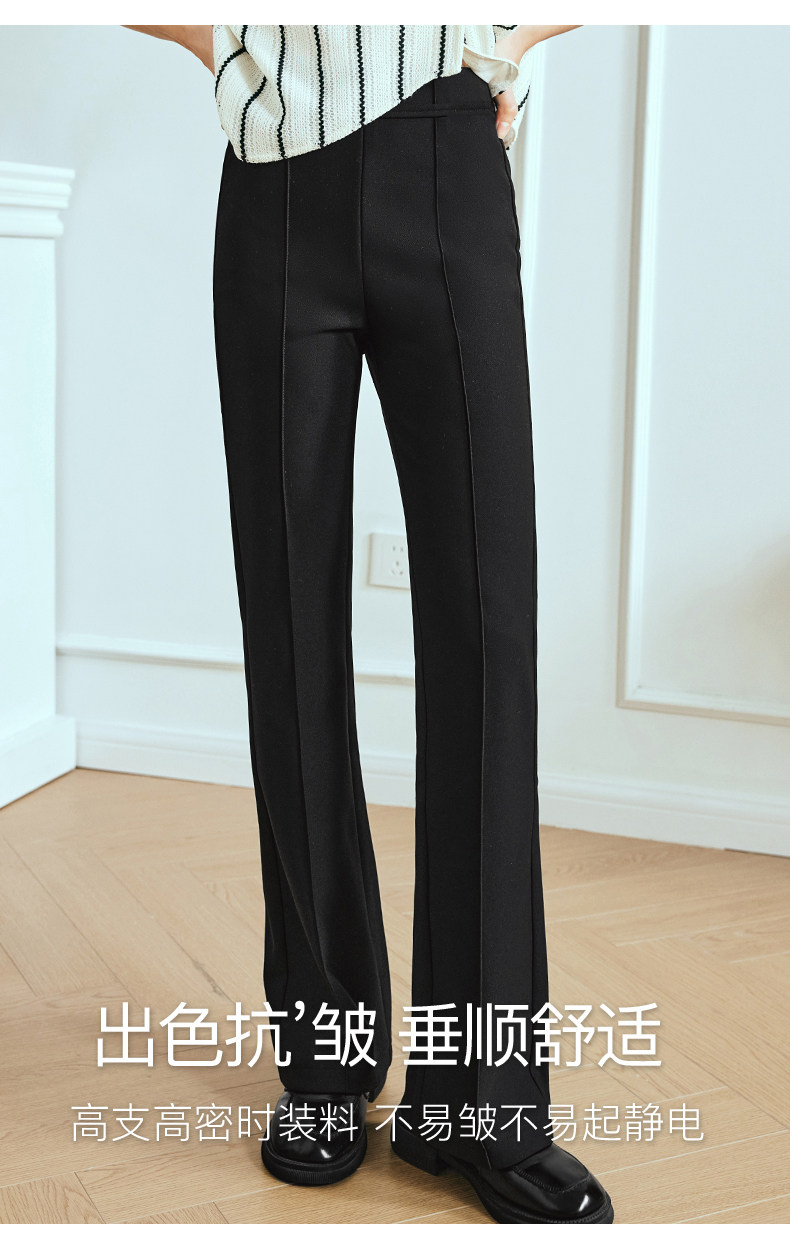 OLrain欧芮儿法式黑色休闲裤女秋季2023新款高腰百搭直筒垂感长裤