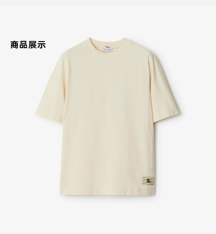【二】BURBERRY 巴宝莉 女士马术骑士徽标贴花棉质圆领短袖T恤 米色 8083627 B7348