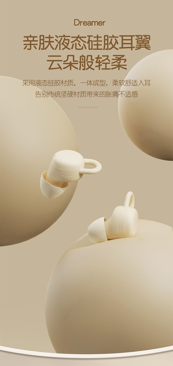 ✅超轻无感佩戴,单边仅 2g,液态硅胶耳翼柔软贴合,侧睡整晚不硌耳!
