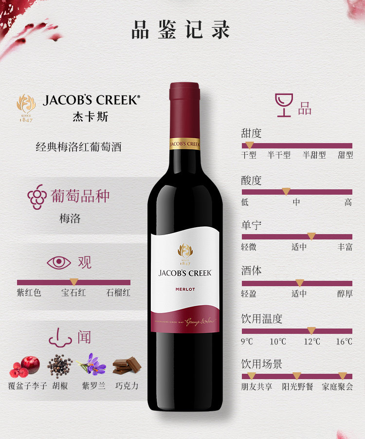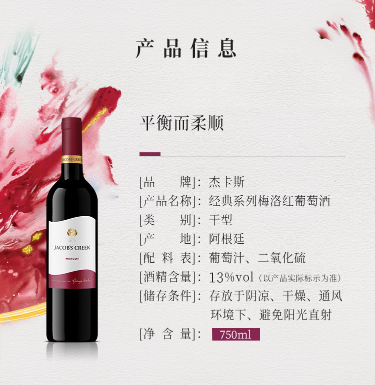 杰卡斯经典系列梅洛干红葡萄酒750ml