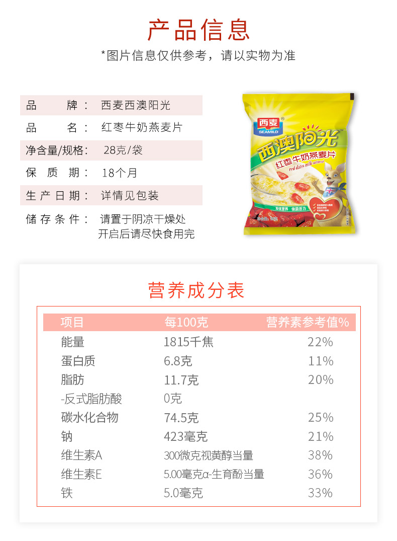 产品名称:西麦牛奶燕麦片 产品规格:西麦原味牛奶燕麦片28gX6包+西麦红枣牛奶燕麦片28gX6包