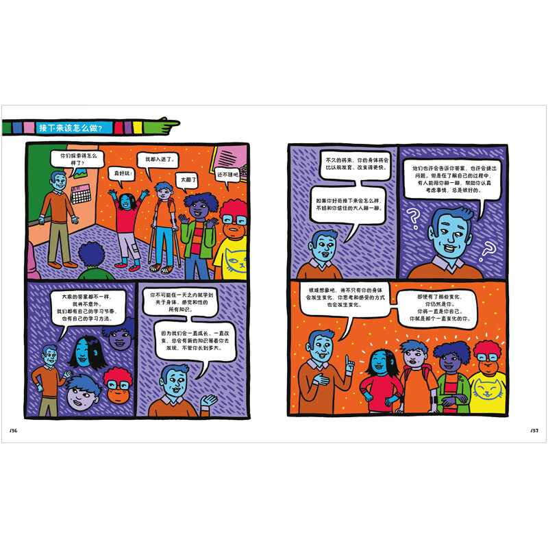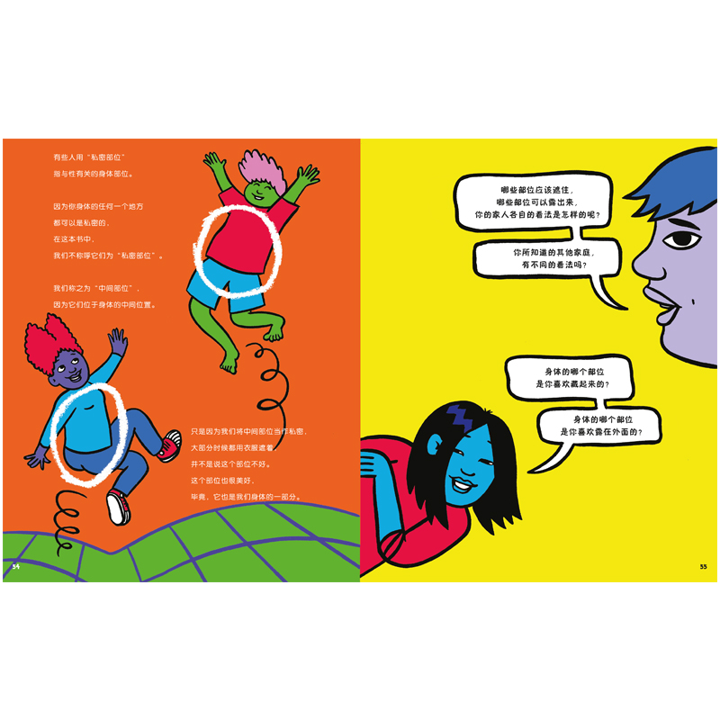 通过轻松、有趣的漫画形式,沟通家长和孩子的困惑,每一章设置问题或活动,让成人和儿童轻松互动,深入对话,学习身体、性别的科普知识,在讲解安全、快乐和边界时,给孩子传递健康、健全的价值观和信念,鼓舞孩子们探索自身感觉,勇于提问,懂得成为自己,自尊自爱,给与尊重、包容、信任。