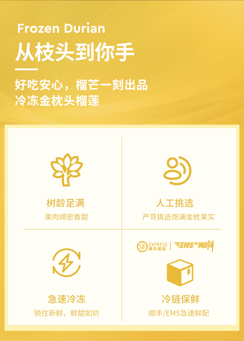 榴芒一刻 金枕冷冻榴莲 老树A级果肉250g 精选采摘 软糯香甜 48小时发货