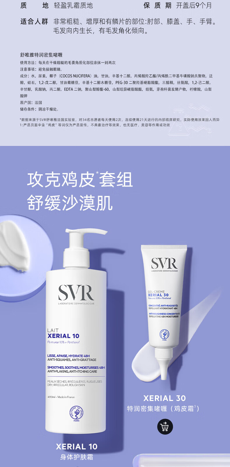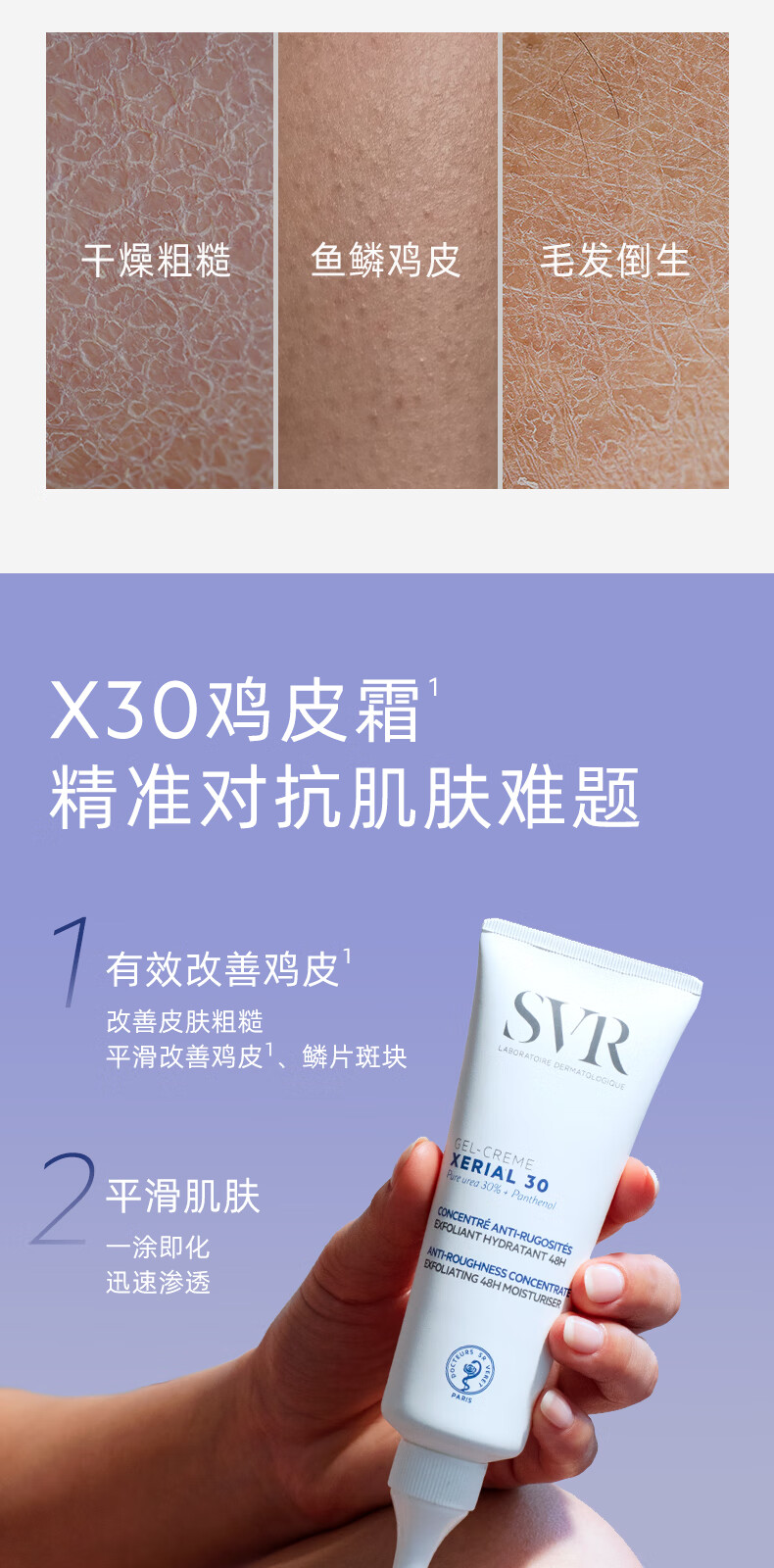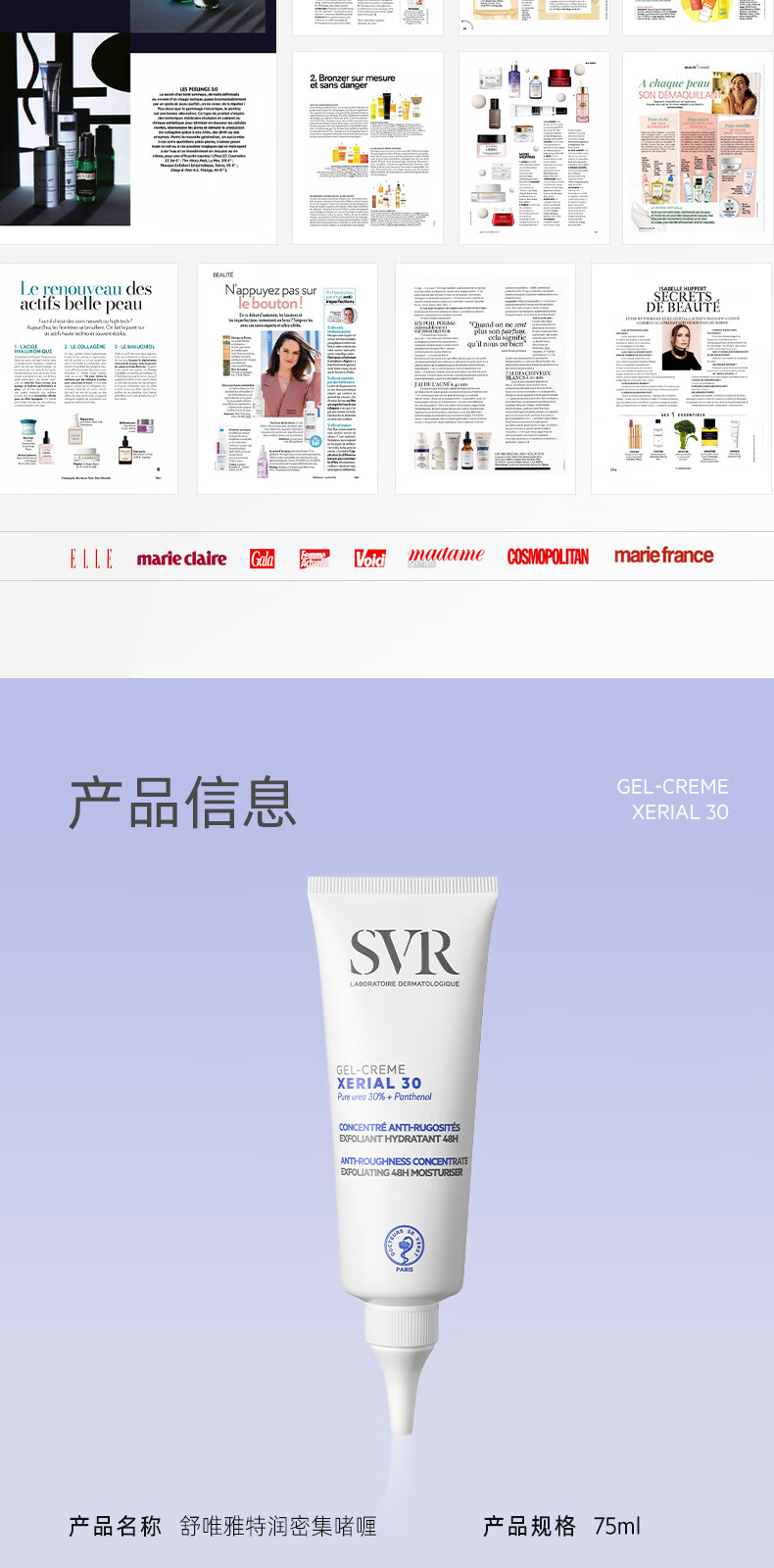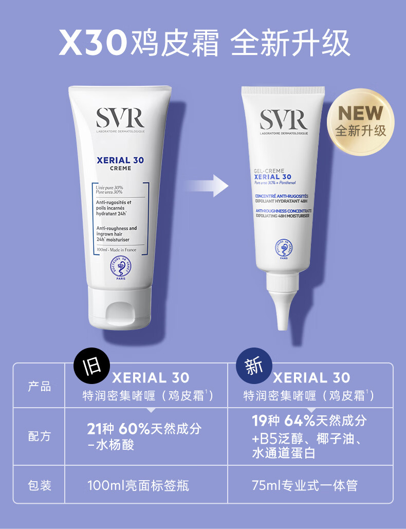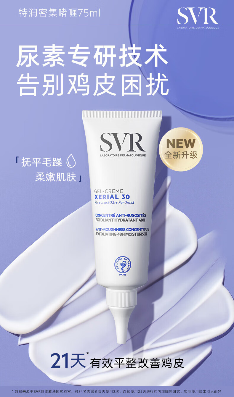 舒唯雅(SVR)X30改善鸡皮啫喱滋润保湿去角质尿素润肤霜75ml