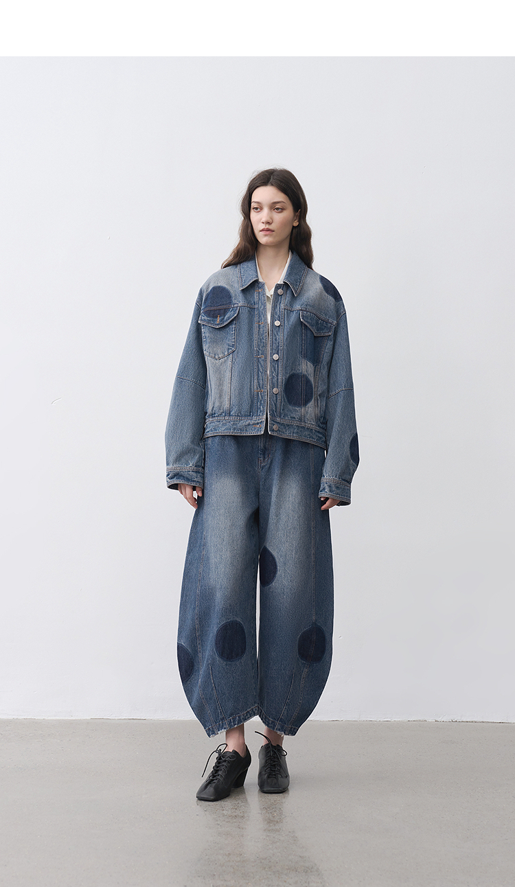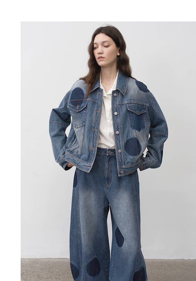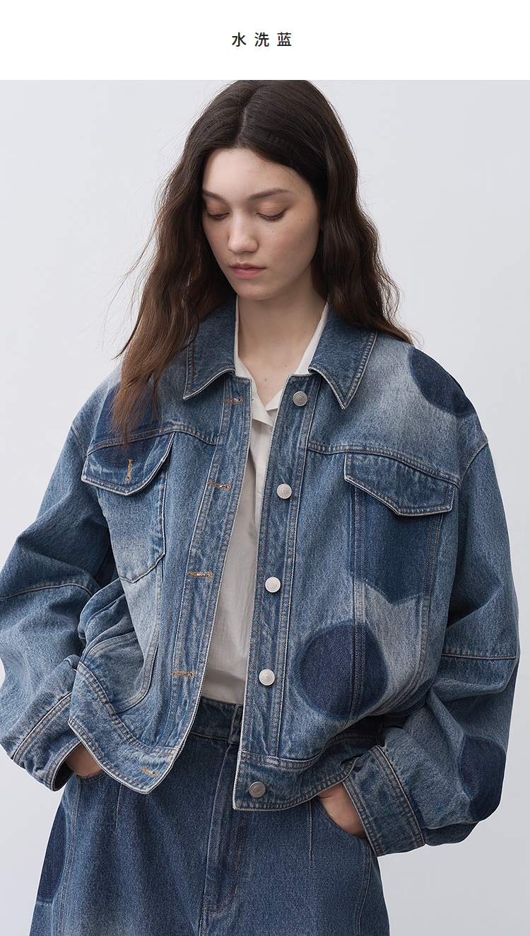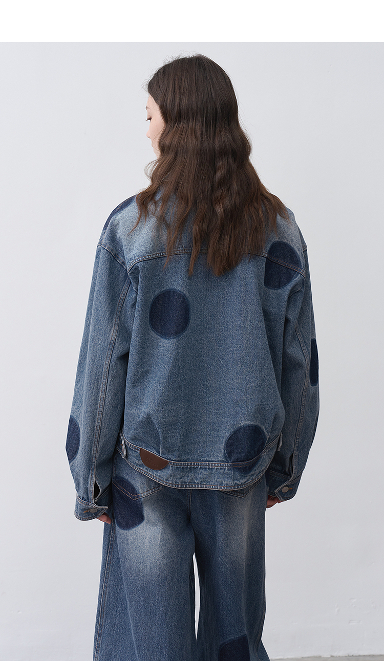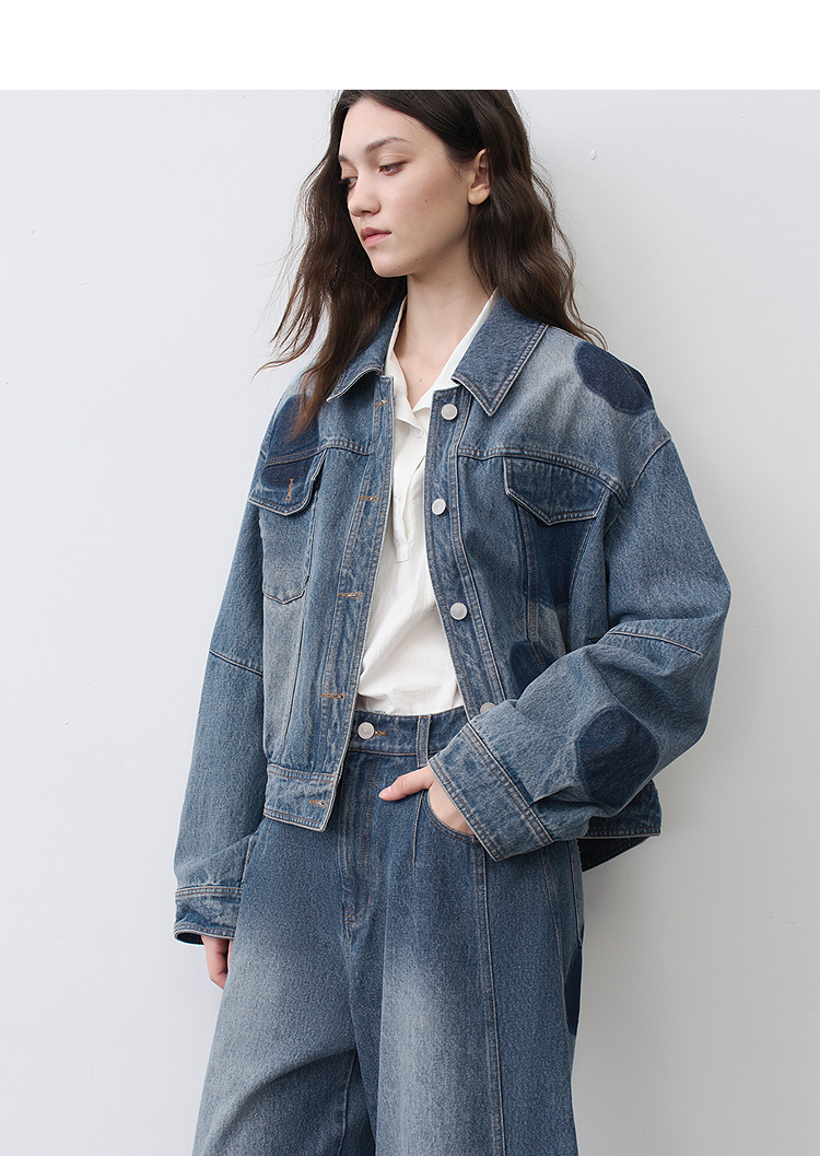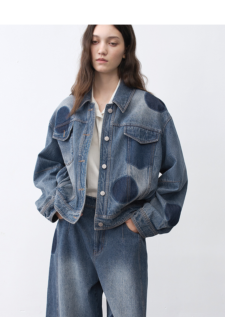 半圆/25231701/短箱圆点做旧牛仔外套