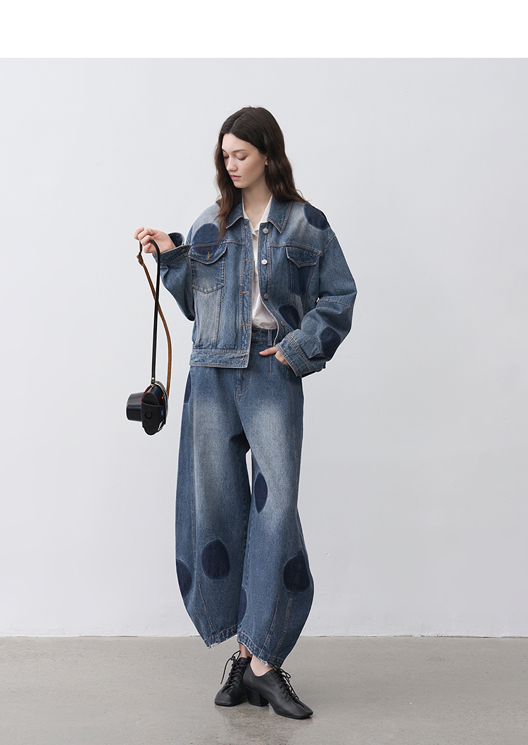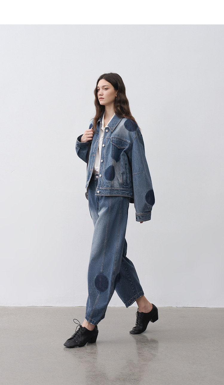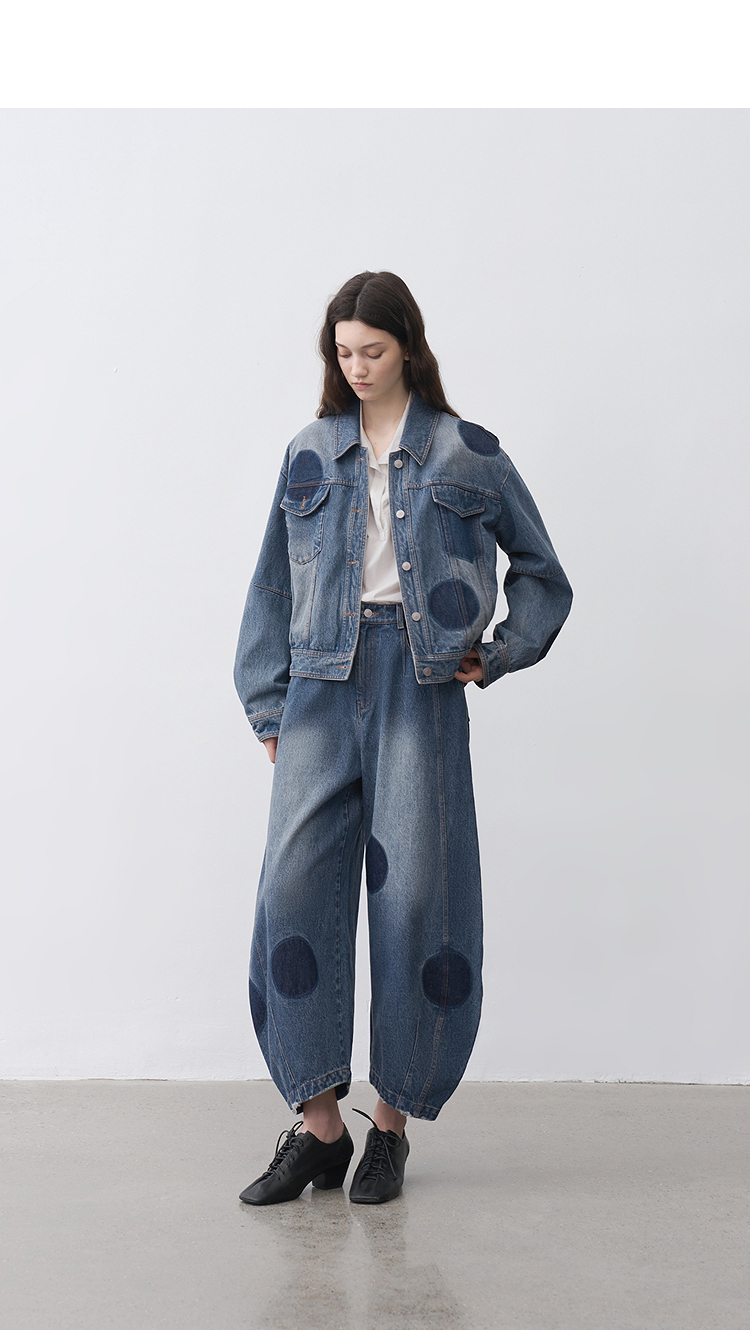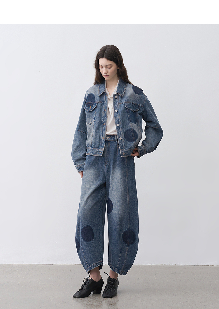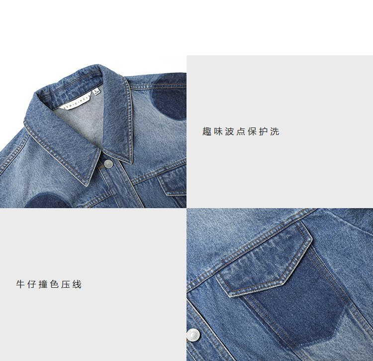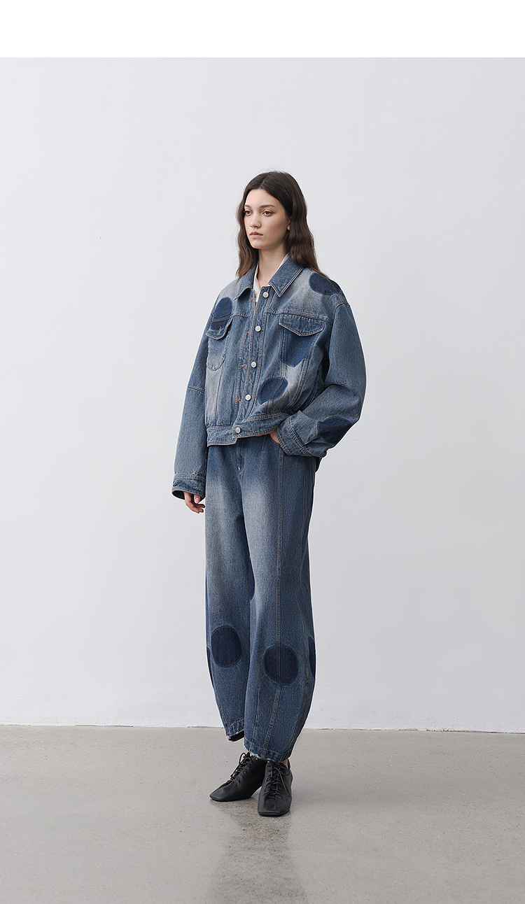 半圆/25231701/短箱圆点做旧牛仔外套