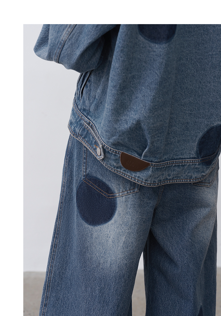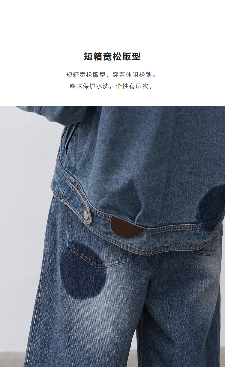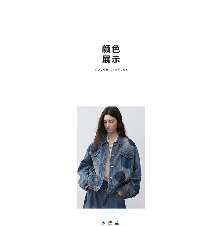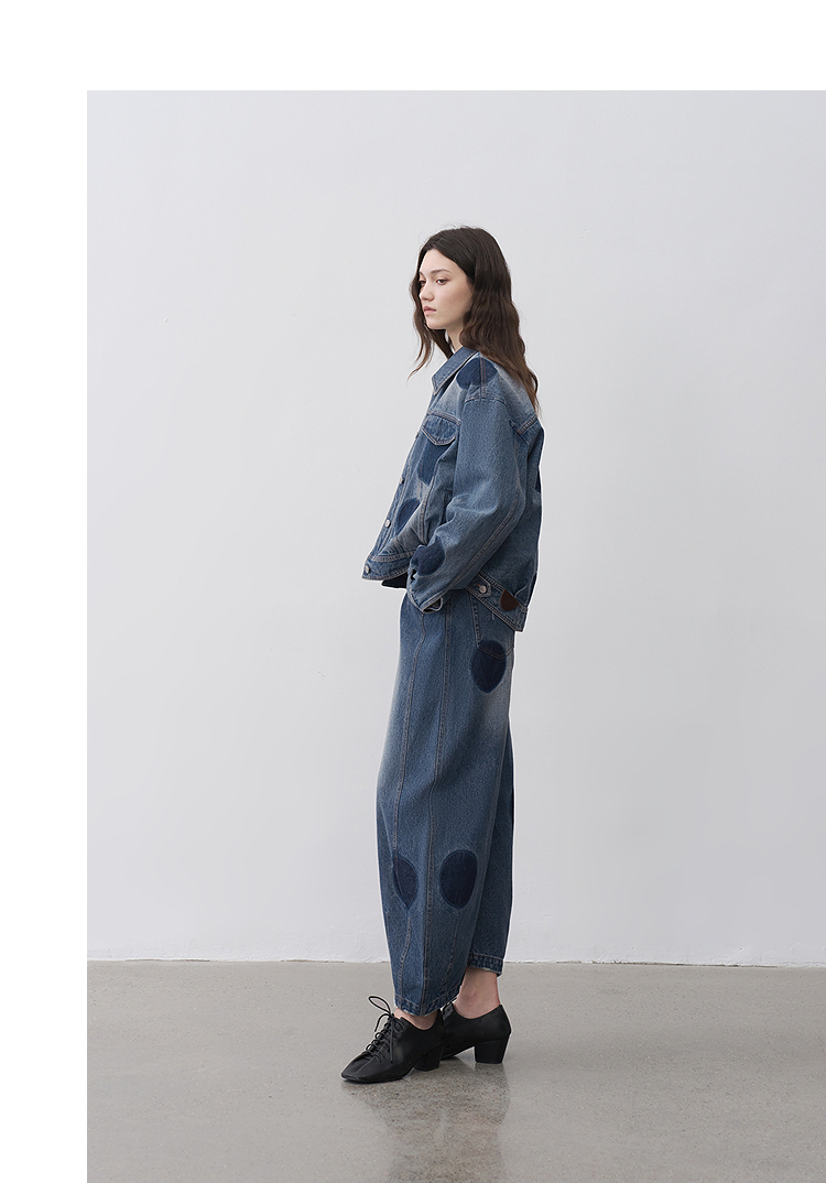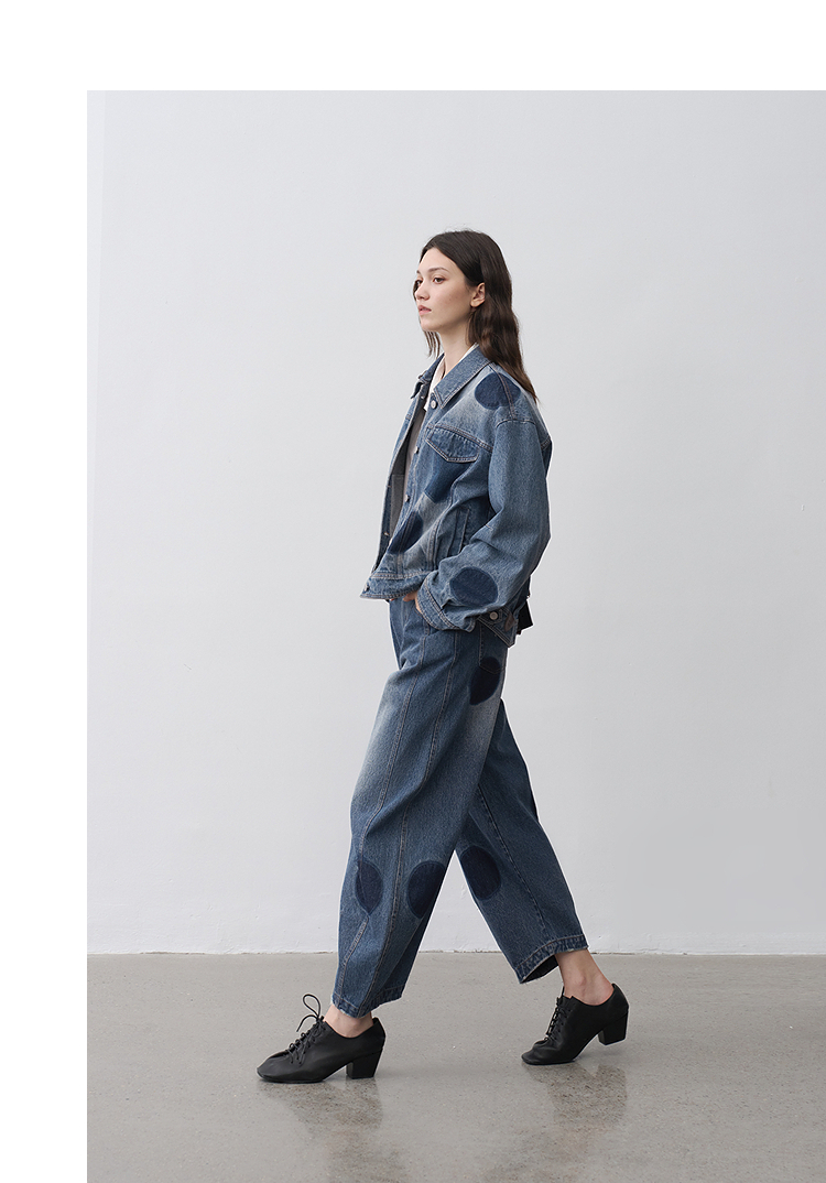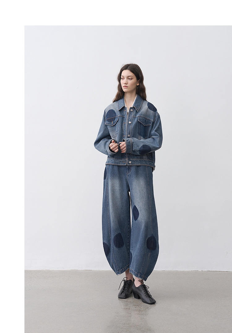 半圆/25231701/短箱圆点做旧牛仔外套