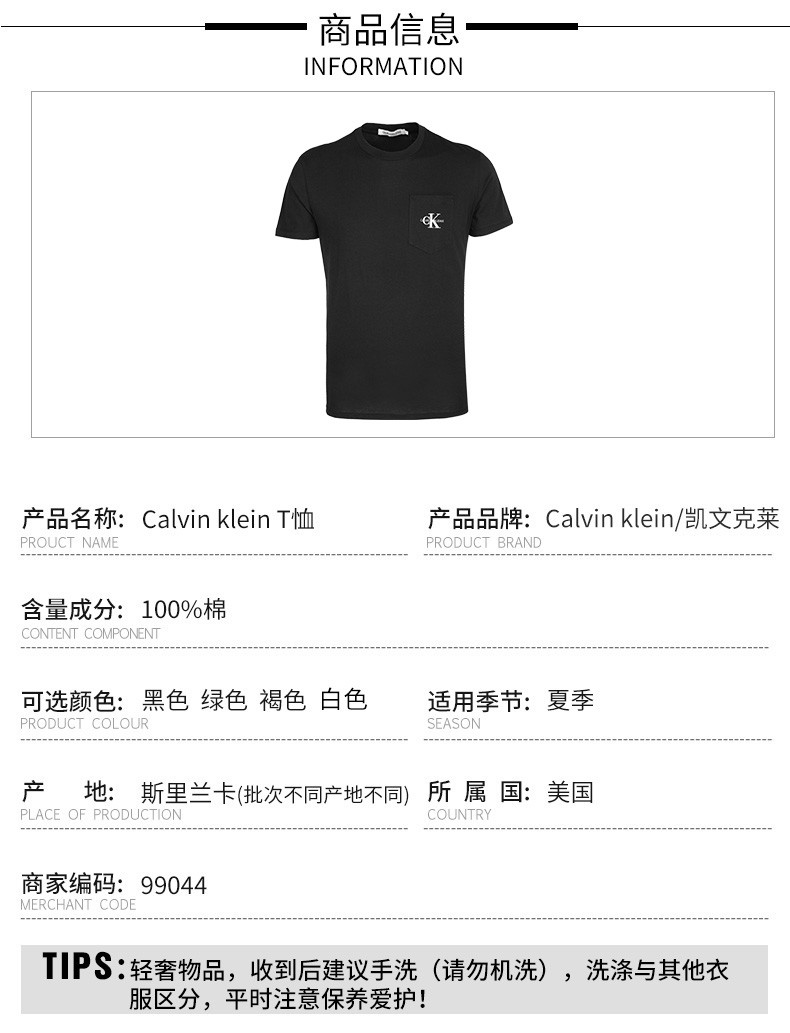 凯文克莱(Calvin Klein)CK男装 男士简约时尚休闲圆领短袖T恤 99044