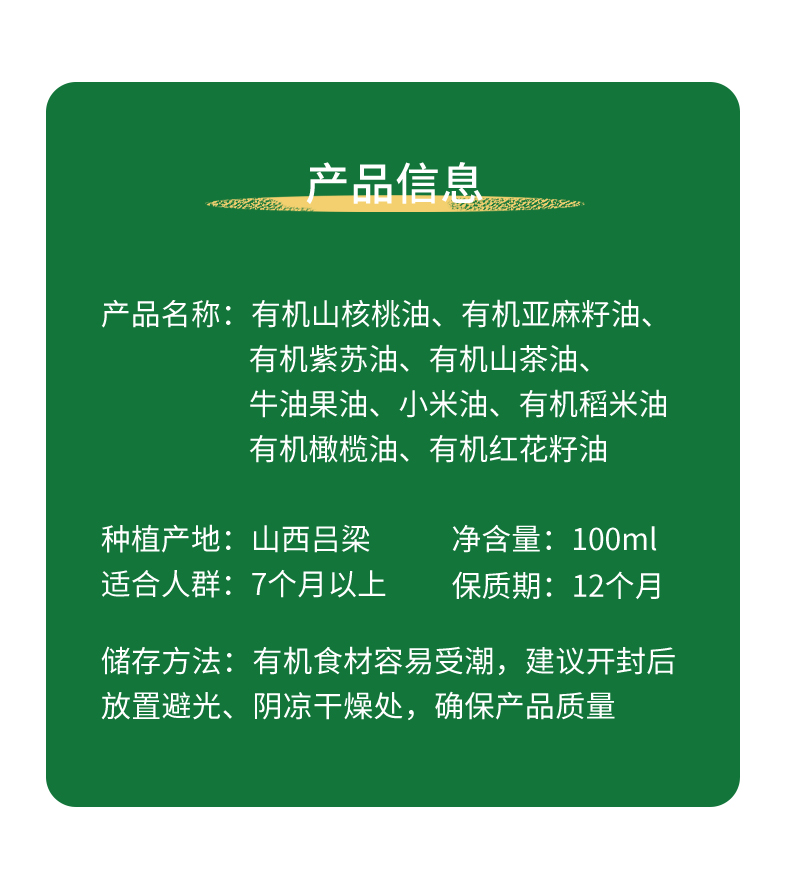 【辅食油组合装】婴幼儿童有机稻米炼制而成