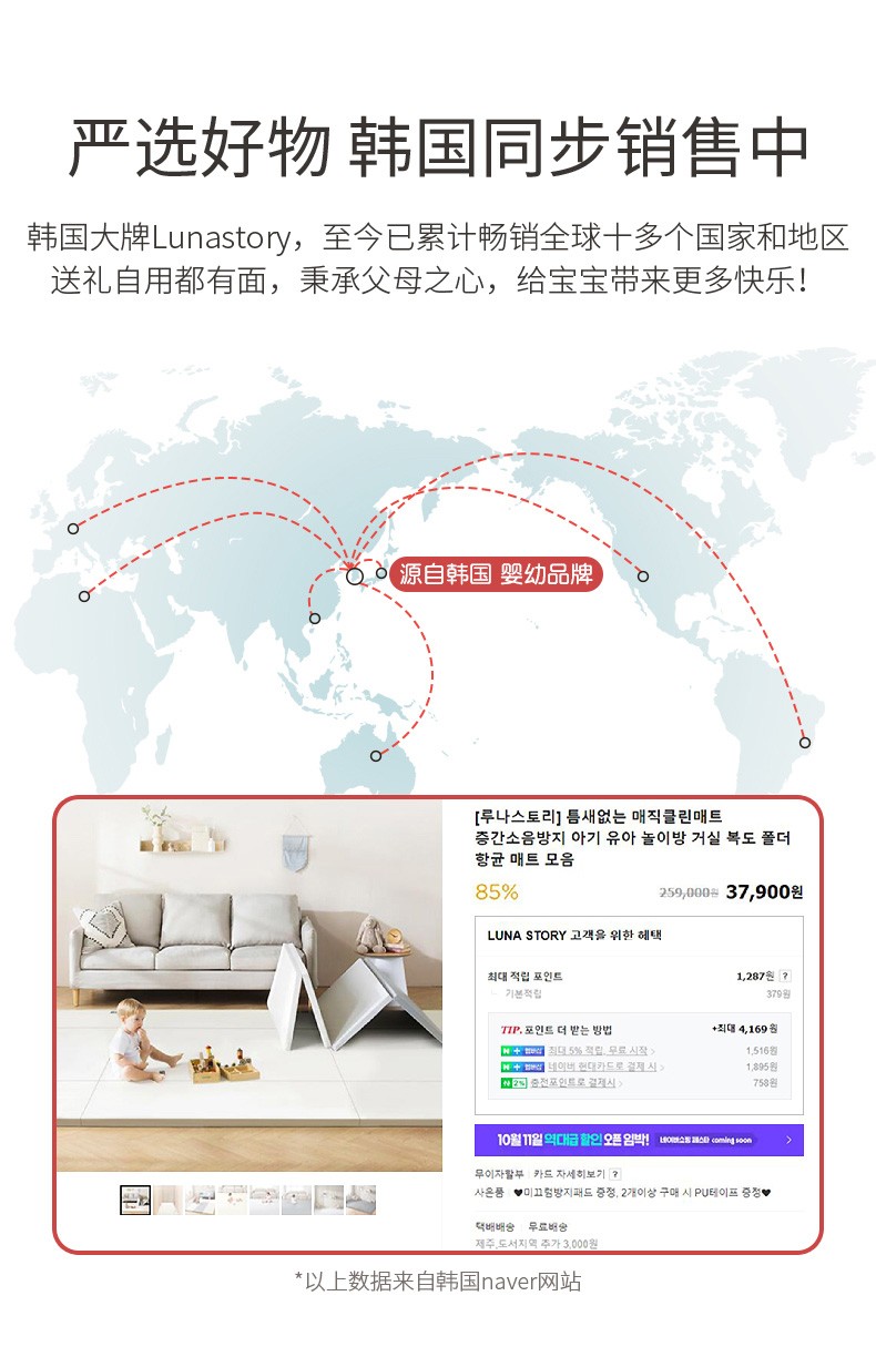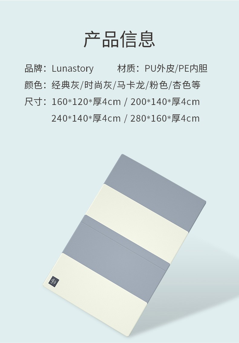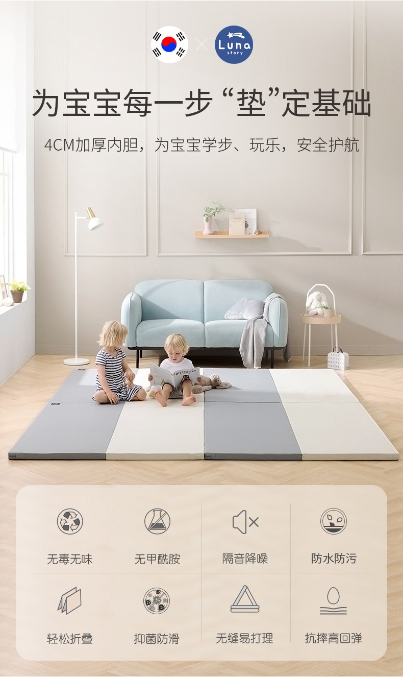 月亮故事(LUNASTORY)无缝升级款5段折叠PE爬行垫宝宝加厚4cm爬爬垫
