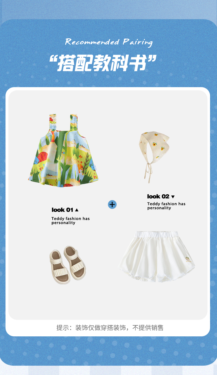 【2件套】【90-140】【精典泰迪】女童夏款背心裤裙两件套装