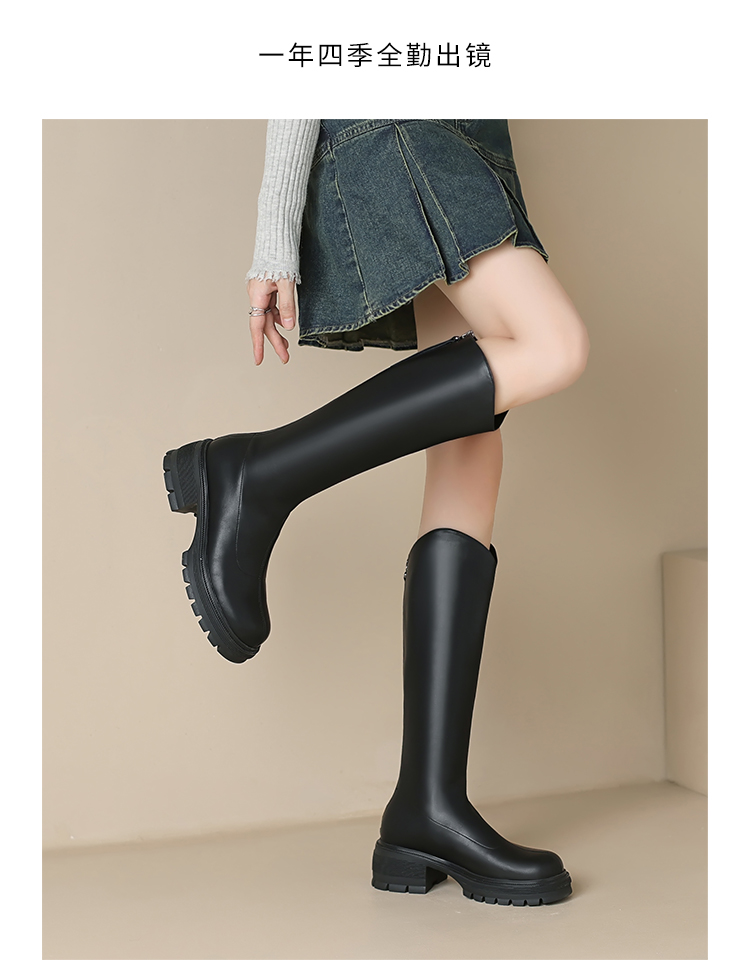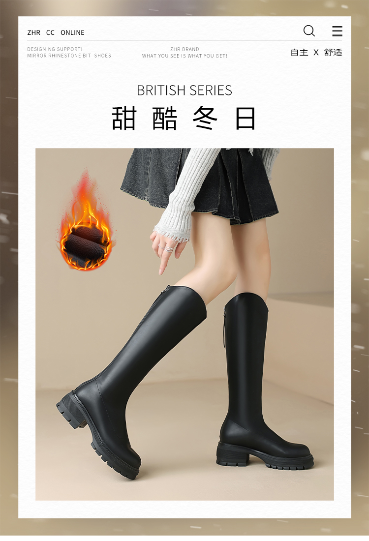 ZHR长筒靴女2023年秋季新款百搭显瘦加绒休闲飒爽加绒骑士长筒靴
