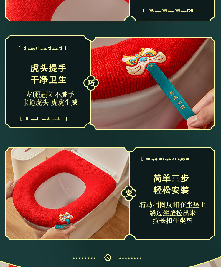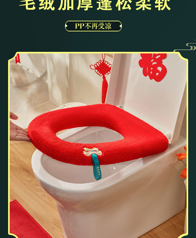 【告别严寒!完美包裹】冬季加厚马桶垫毛绒保暖马桶套四季通用可水洗坐便垫套婚庆坐便套。ry