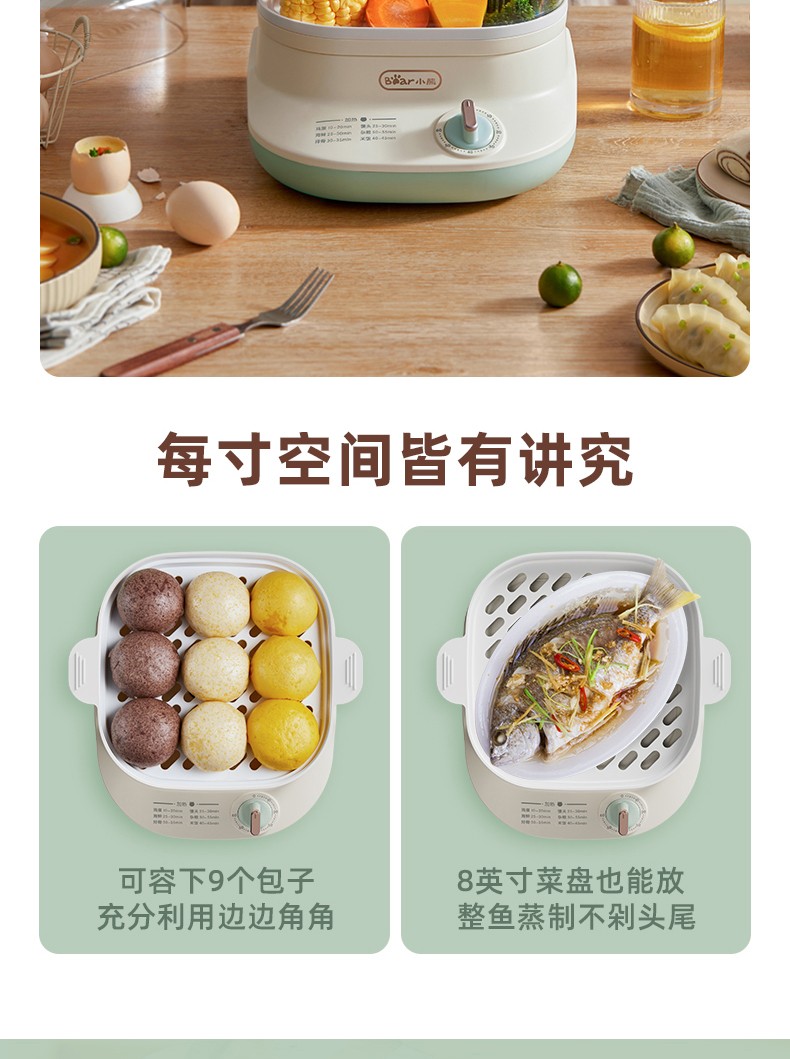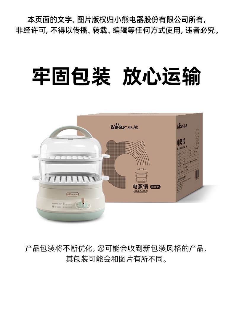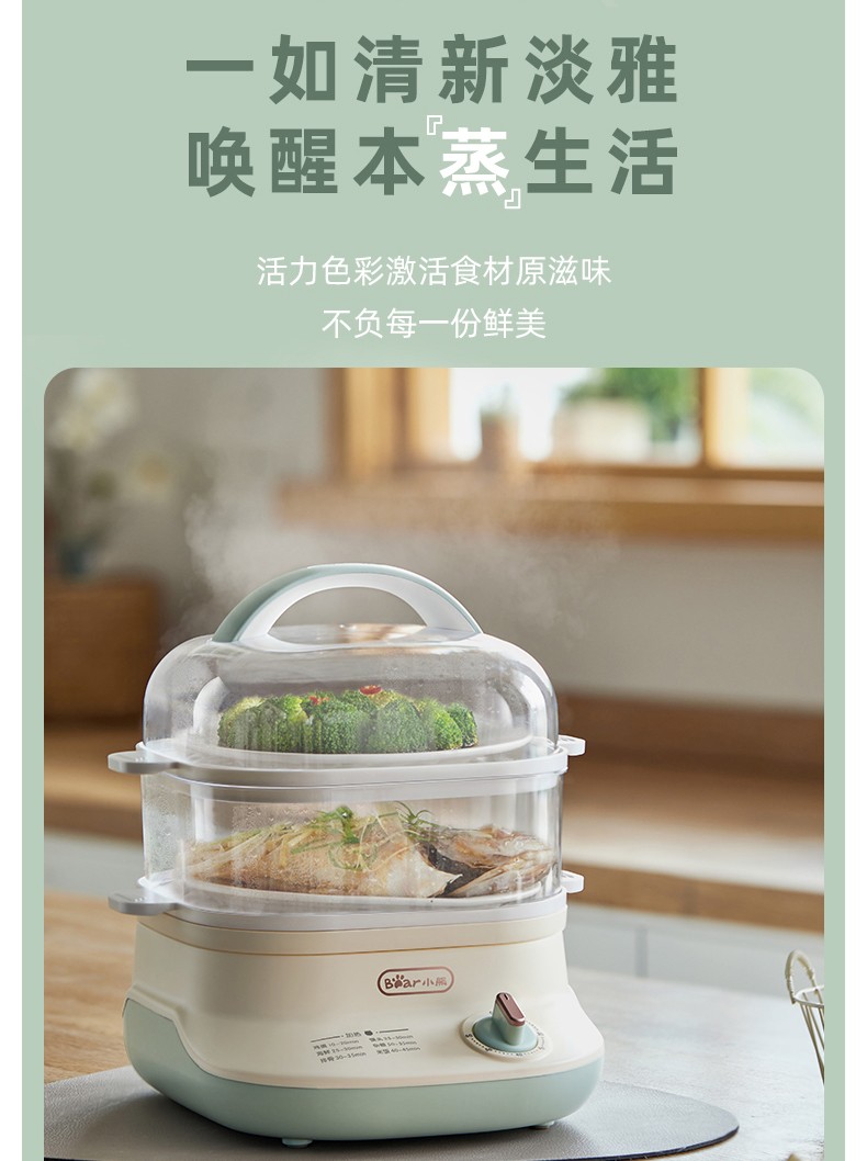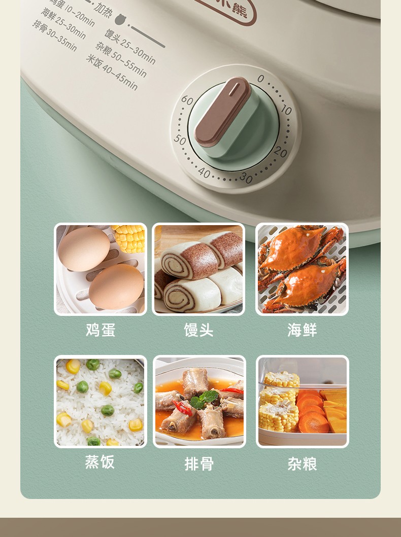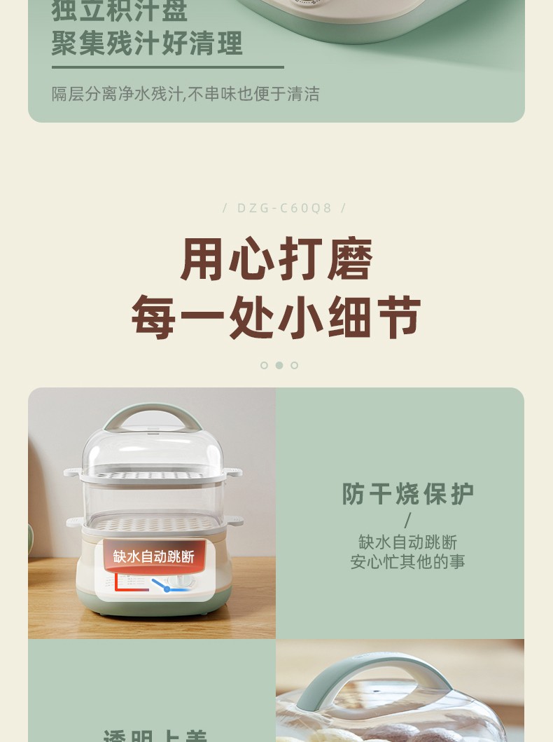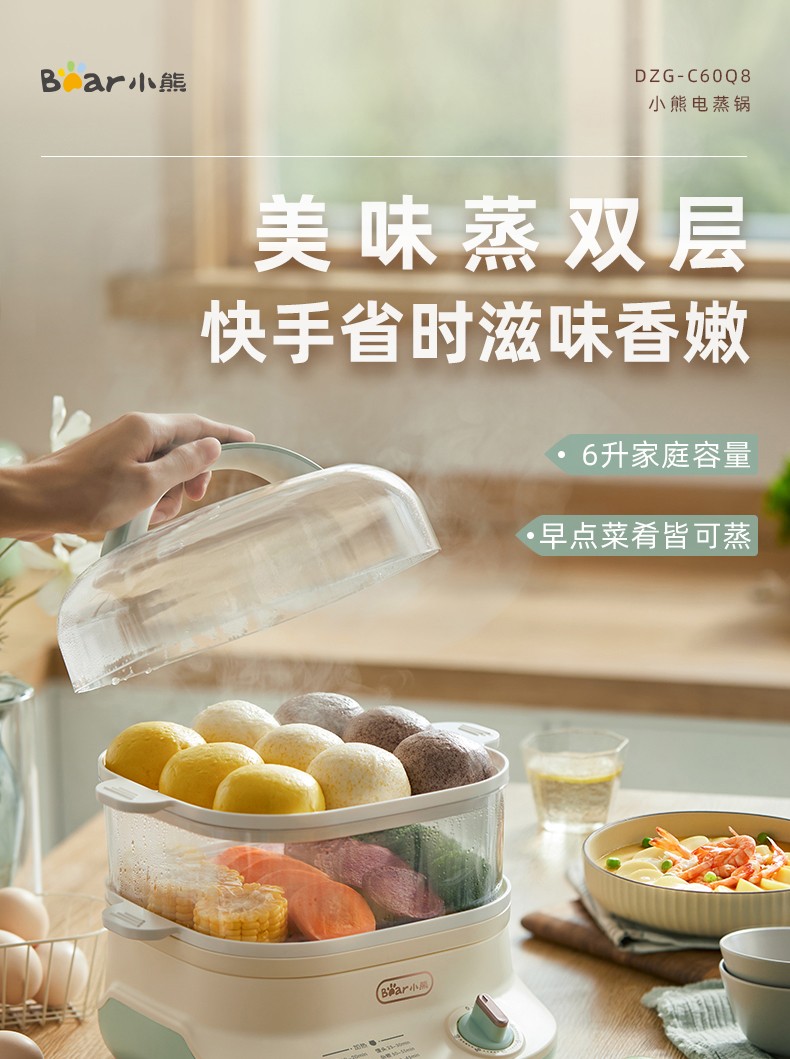 小熊(Bear)DZG-C60Q8 电蒸锅 蒸蛋器 蒸锅家用 电蒸笼迷你多功能早餐包子分体式电热煮锅可定时带积汁盘 【高性价比】6L容量
