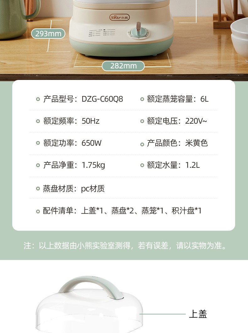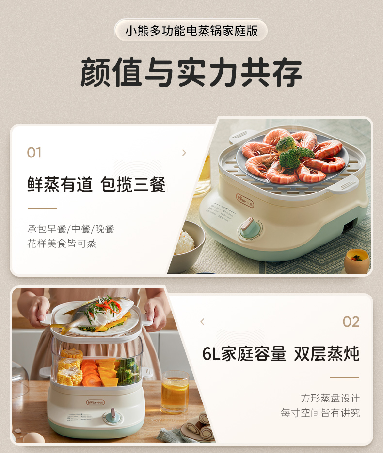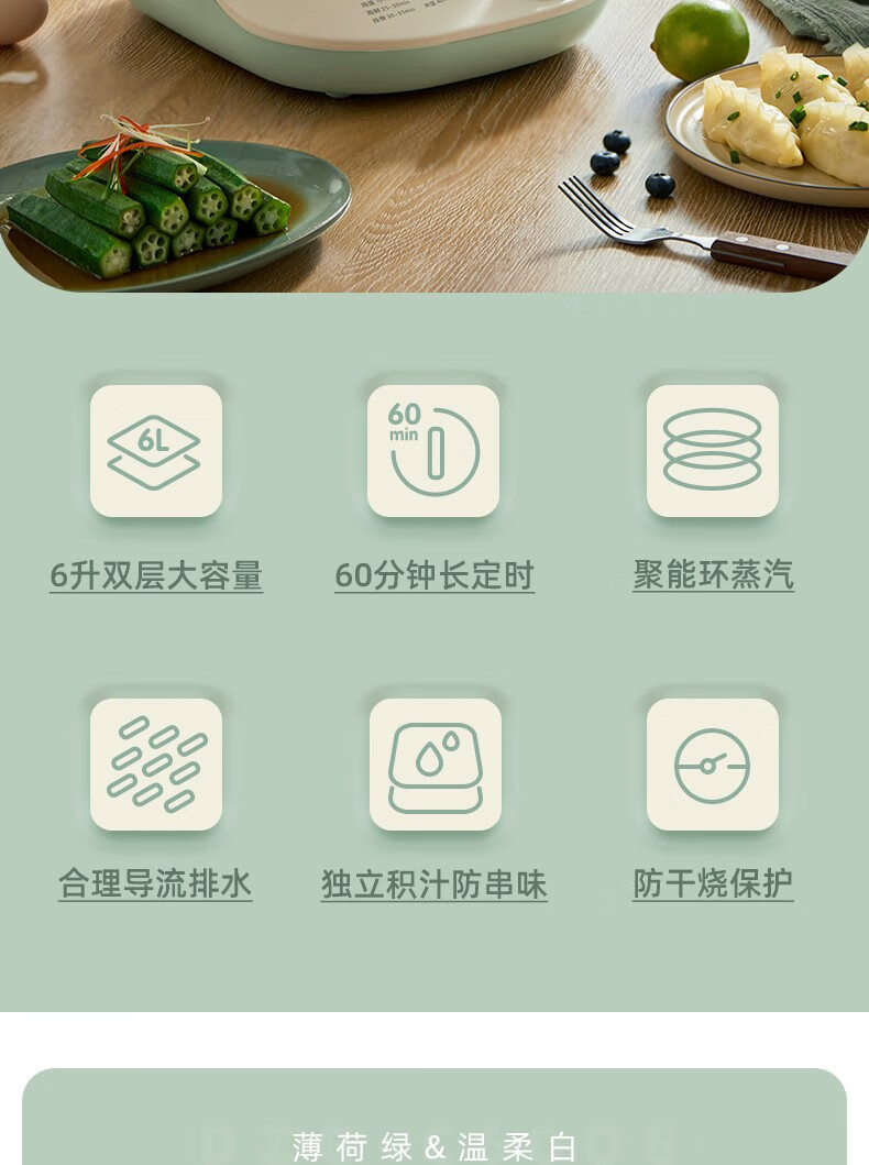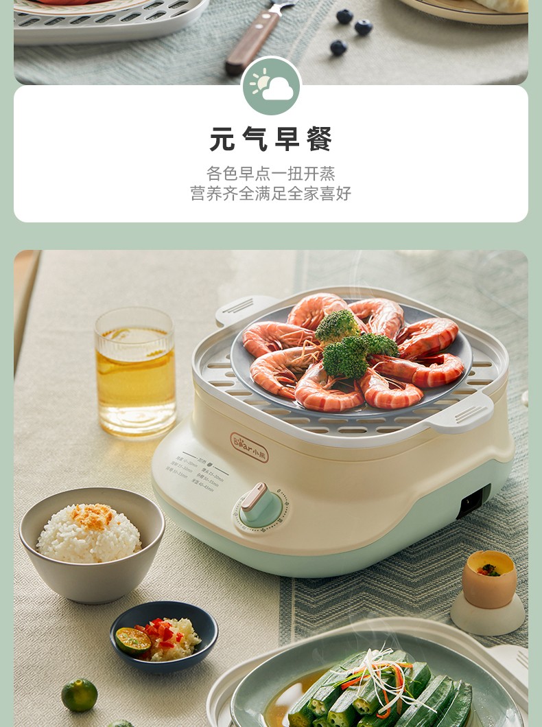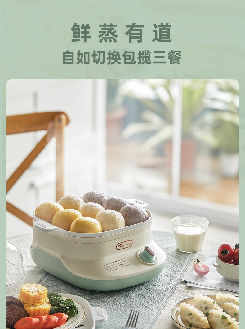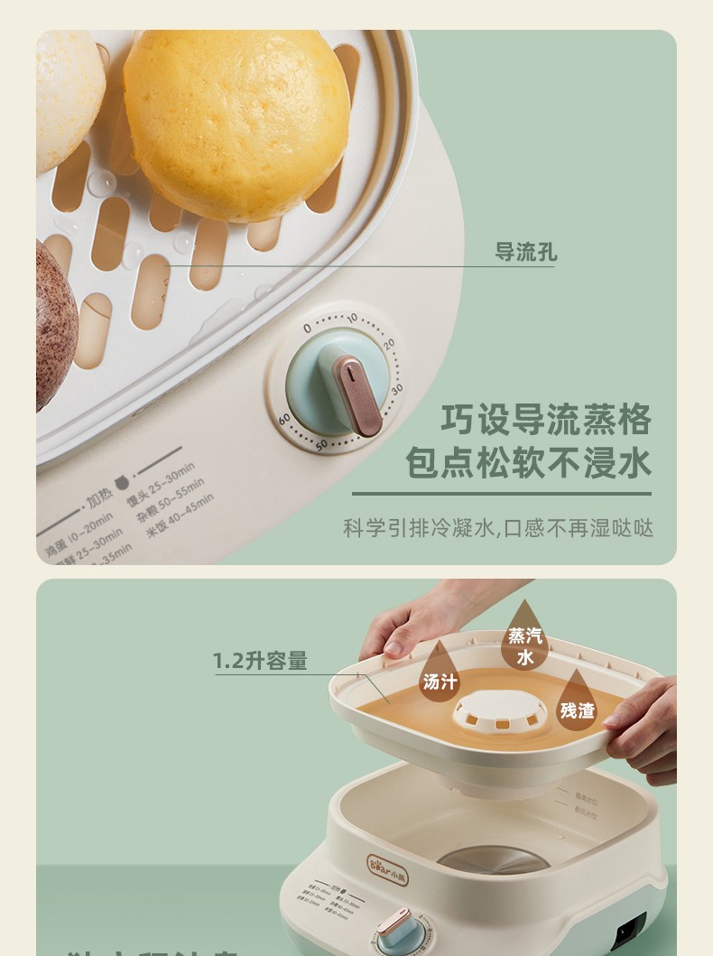 小熊(Bear)DZG-C60Q8 电蒸锅 蒸蛋器 蒸锅家用 电蒸笼迷你多功能早餐包子分体式电热煮锅可定时带积汁盘 【高性价比】6L容量