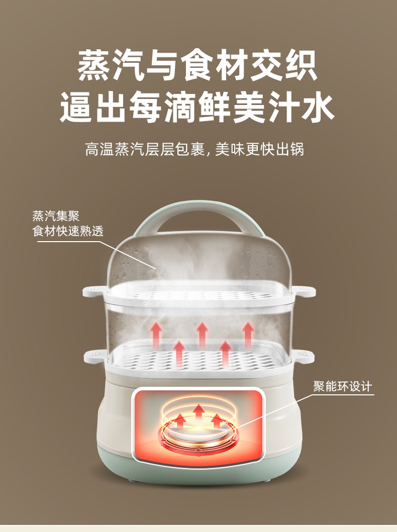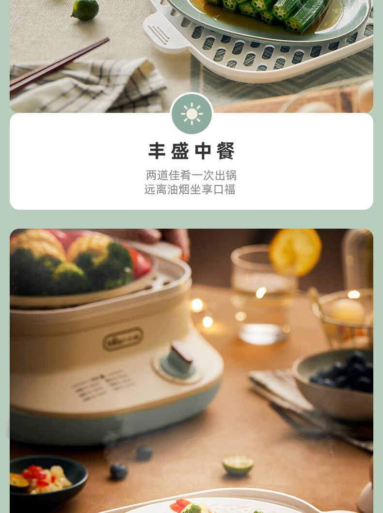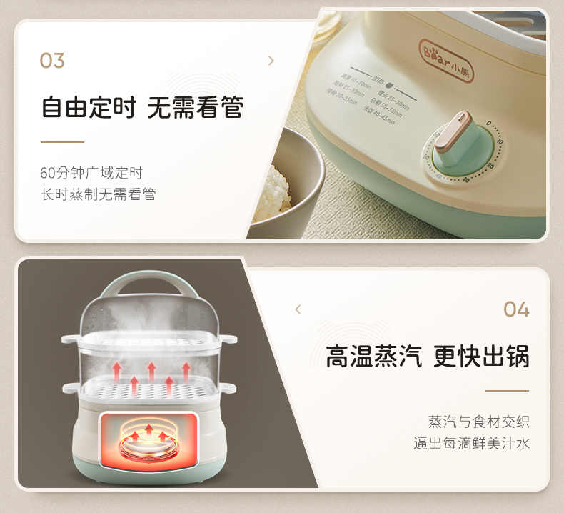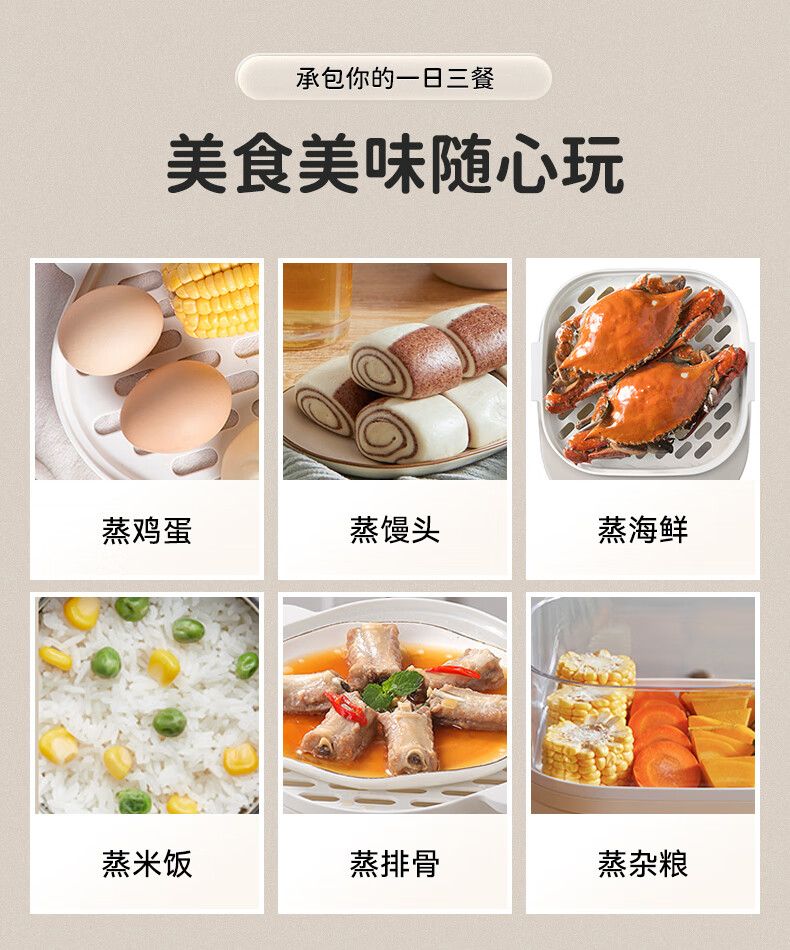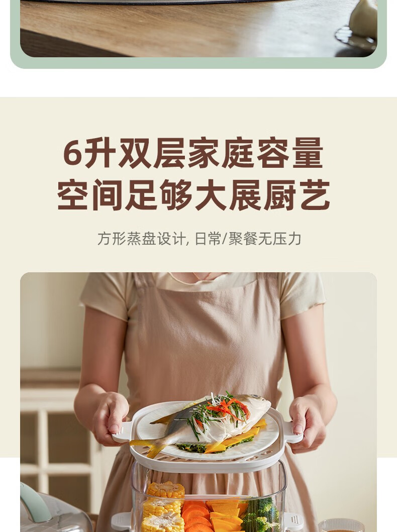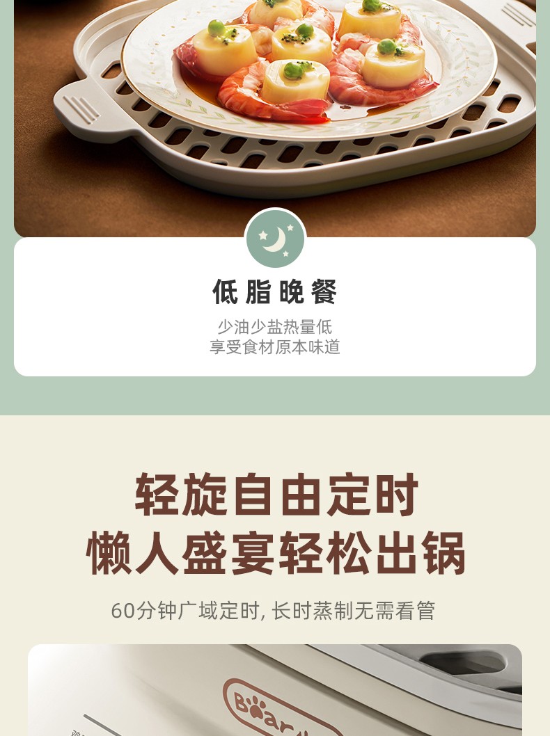 小熊(Bear)DZG-C60Q8 电蒸锅 蒸蛋器 蒸锅家用 电蒸笼迷你多功能早餐包子分体式电热煮锅可定时带积汁盘 【高性价比】6L容量