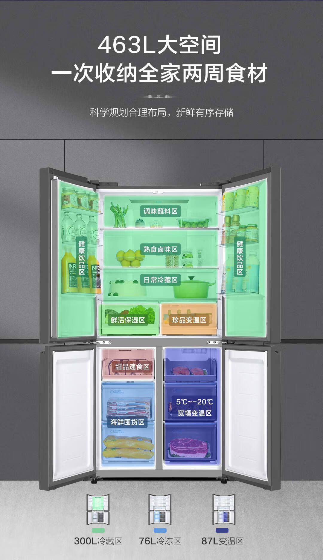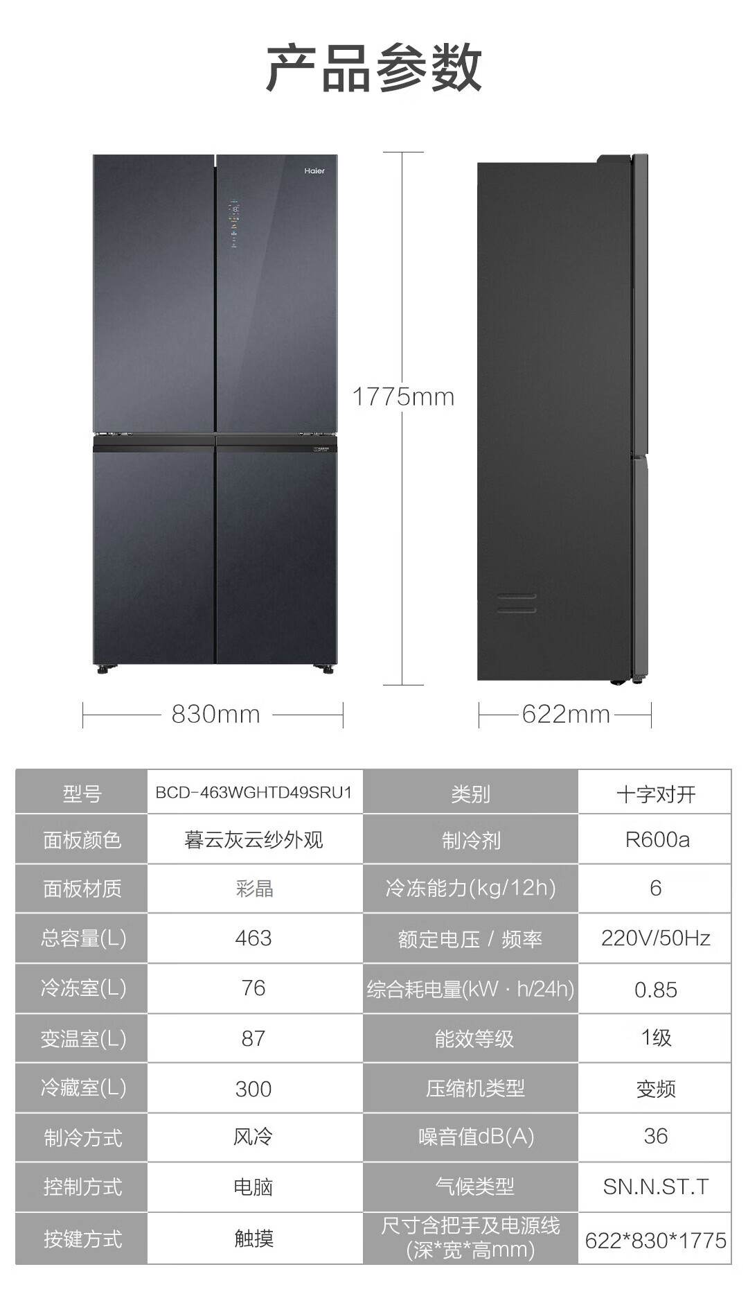 海尔十字门冰箱 BCD-463WGHTD49SRU1