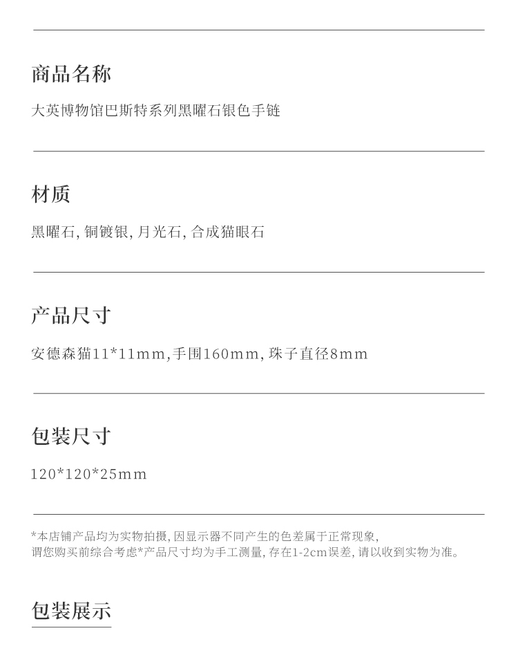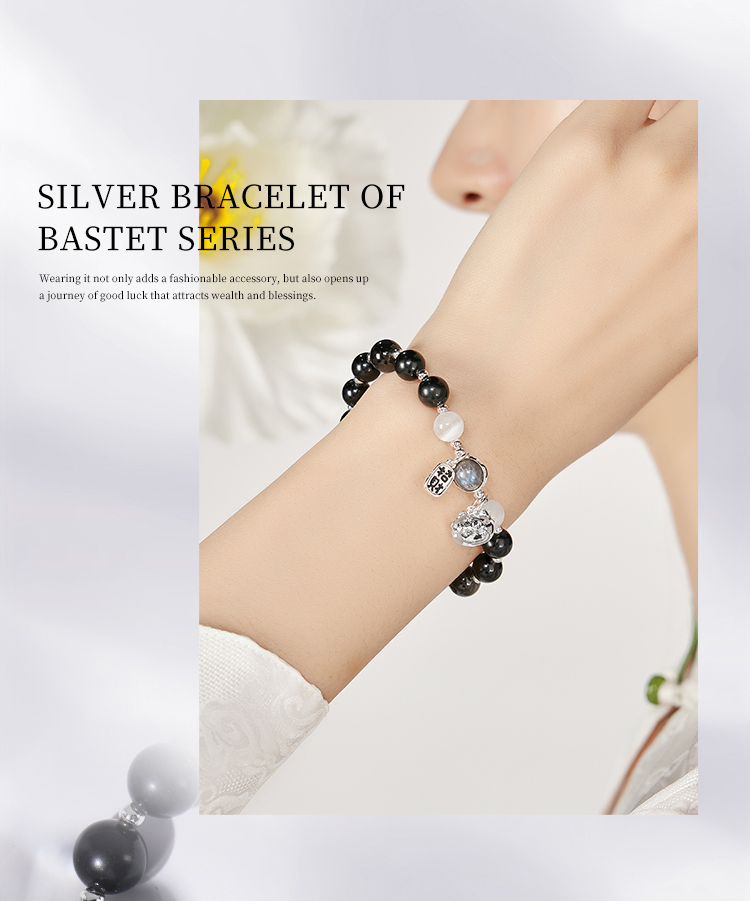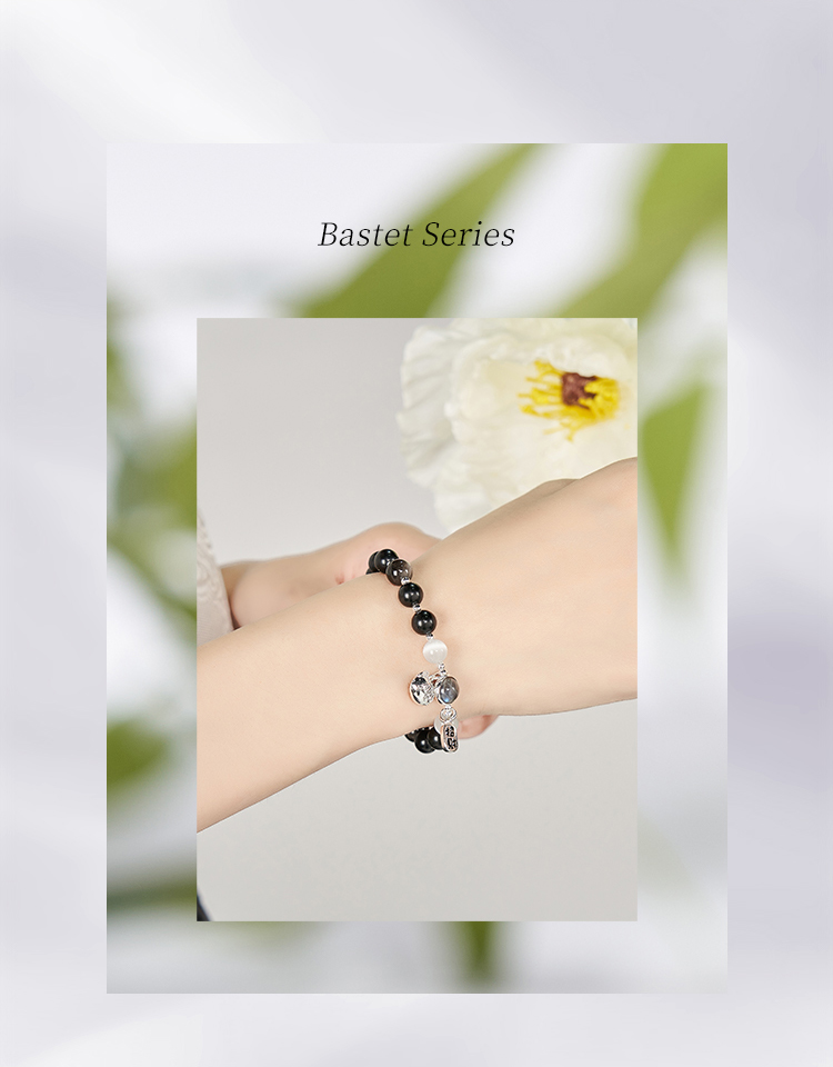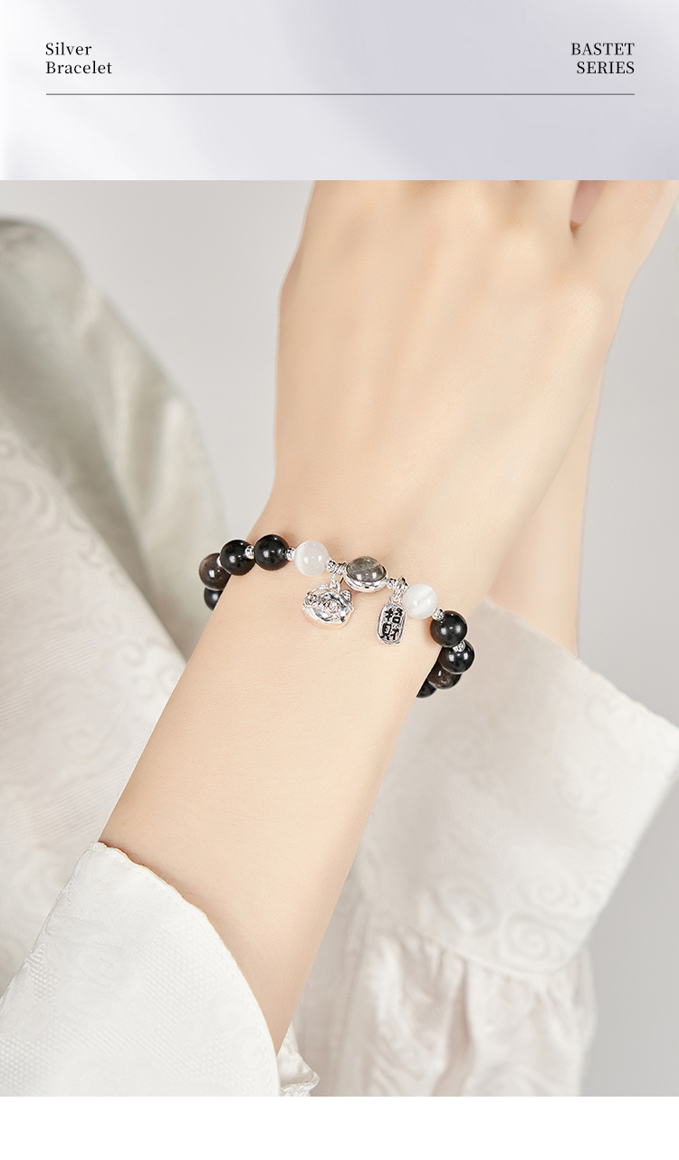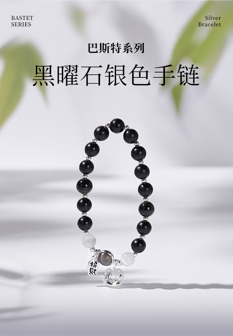 大英博物馆 巴斯特系列 黑曜石银色 手链