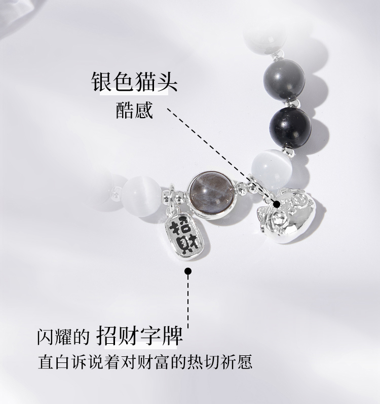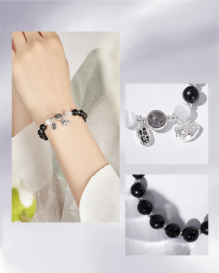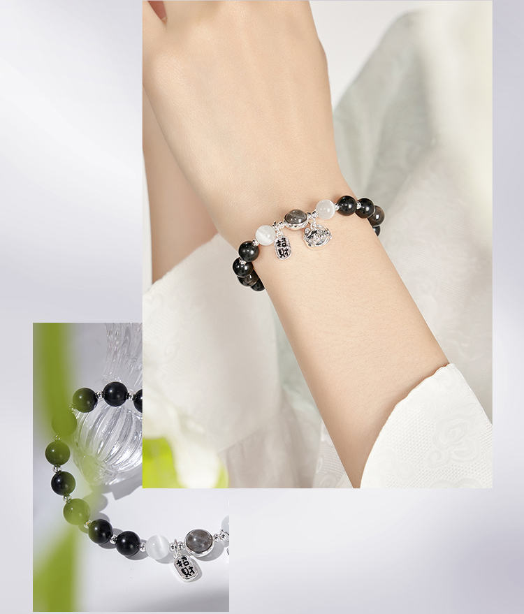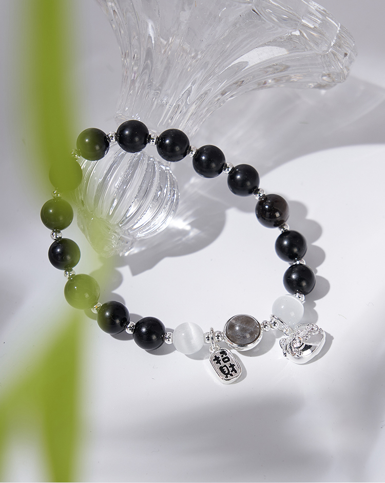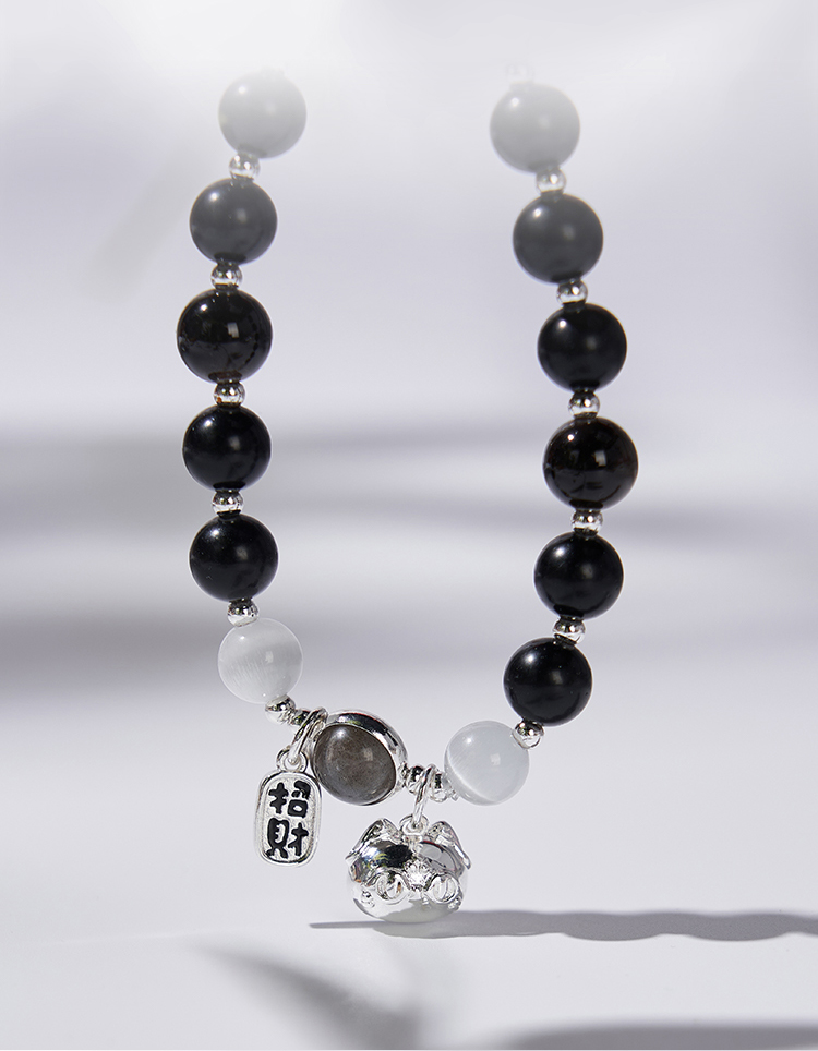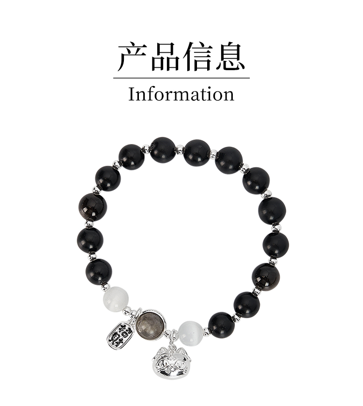 大英博物馆 巴斯特系列 黑曜石银色 手链