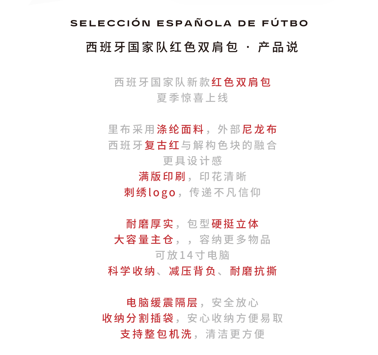 西班牙国家队官方商品丨西班牙国家队红色印花双肩包户外运动背包