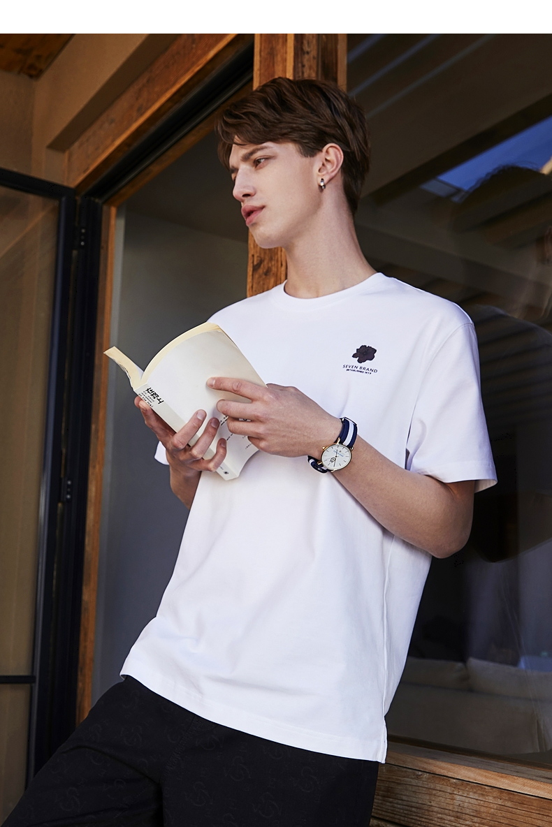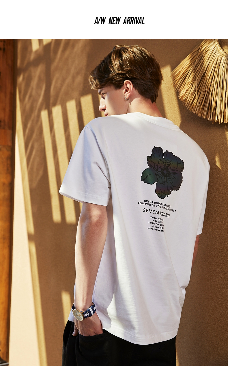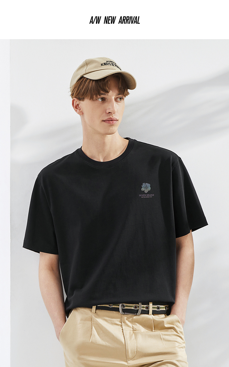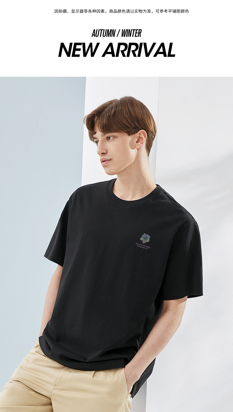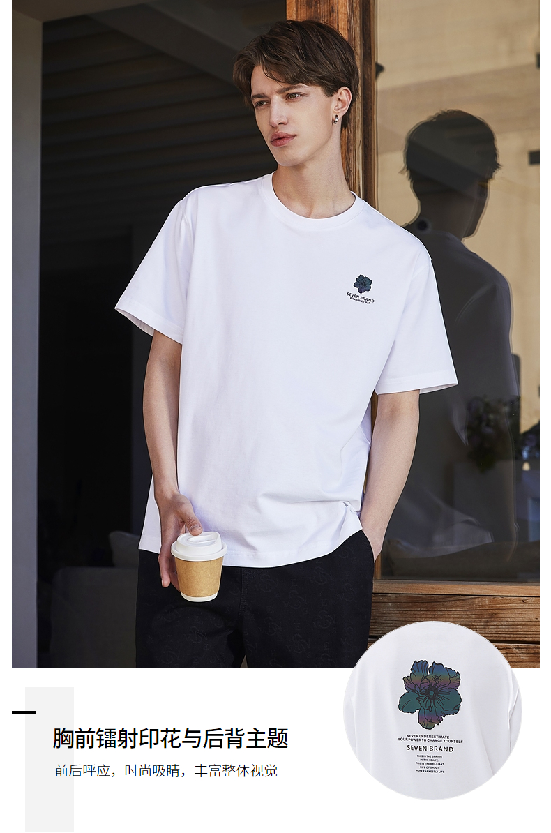 【纯棉】柒牌短袖t恤男夏季新款时尚印花男士休闲百搭圆领上衣潮 124T71790