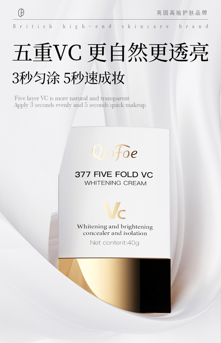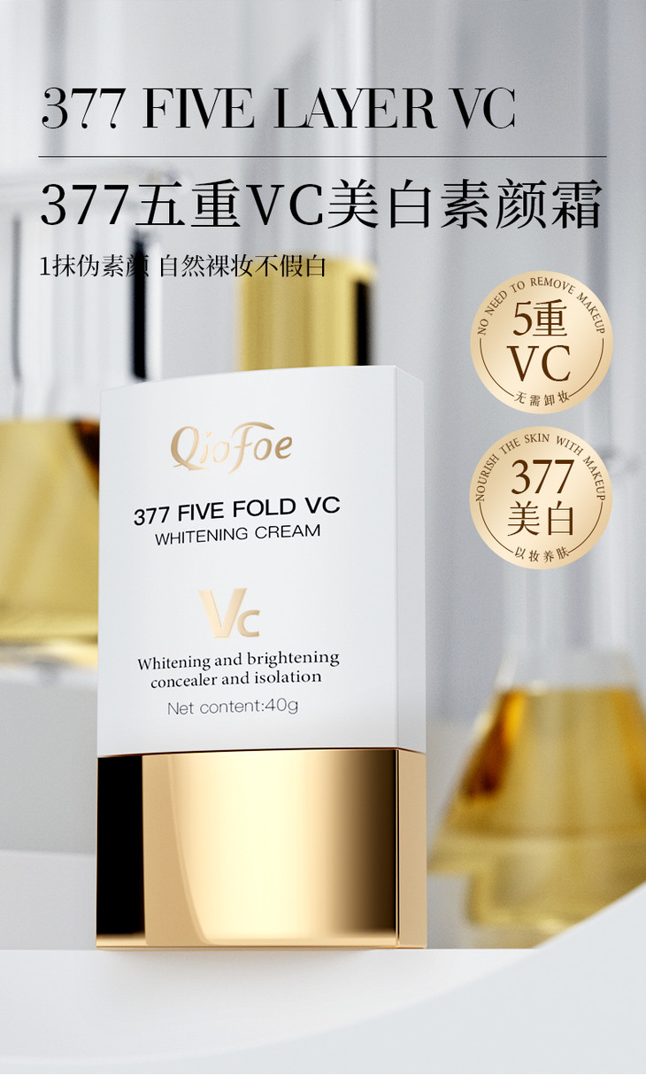 【QioFoe-377五重VC素颜霜 】自然美颜,提亮遮瑕,水润保湿,不假白,持久不脱妆