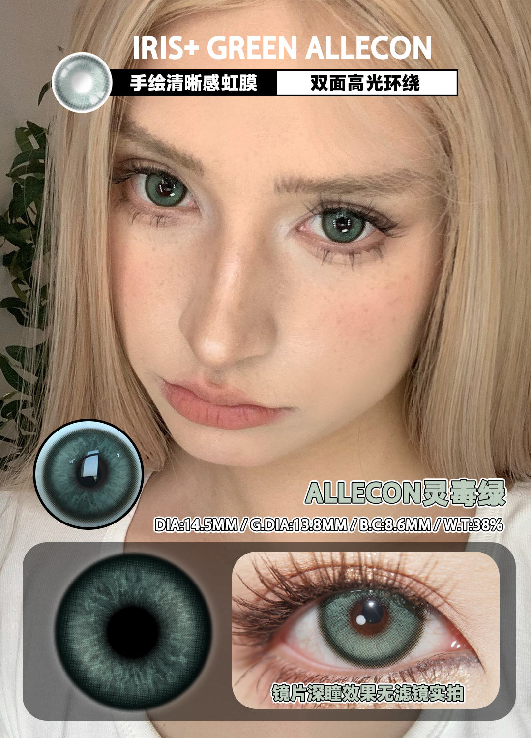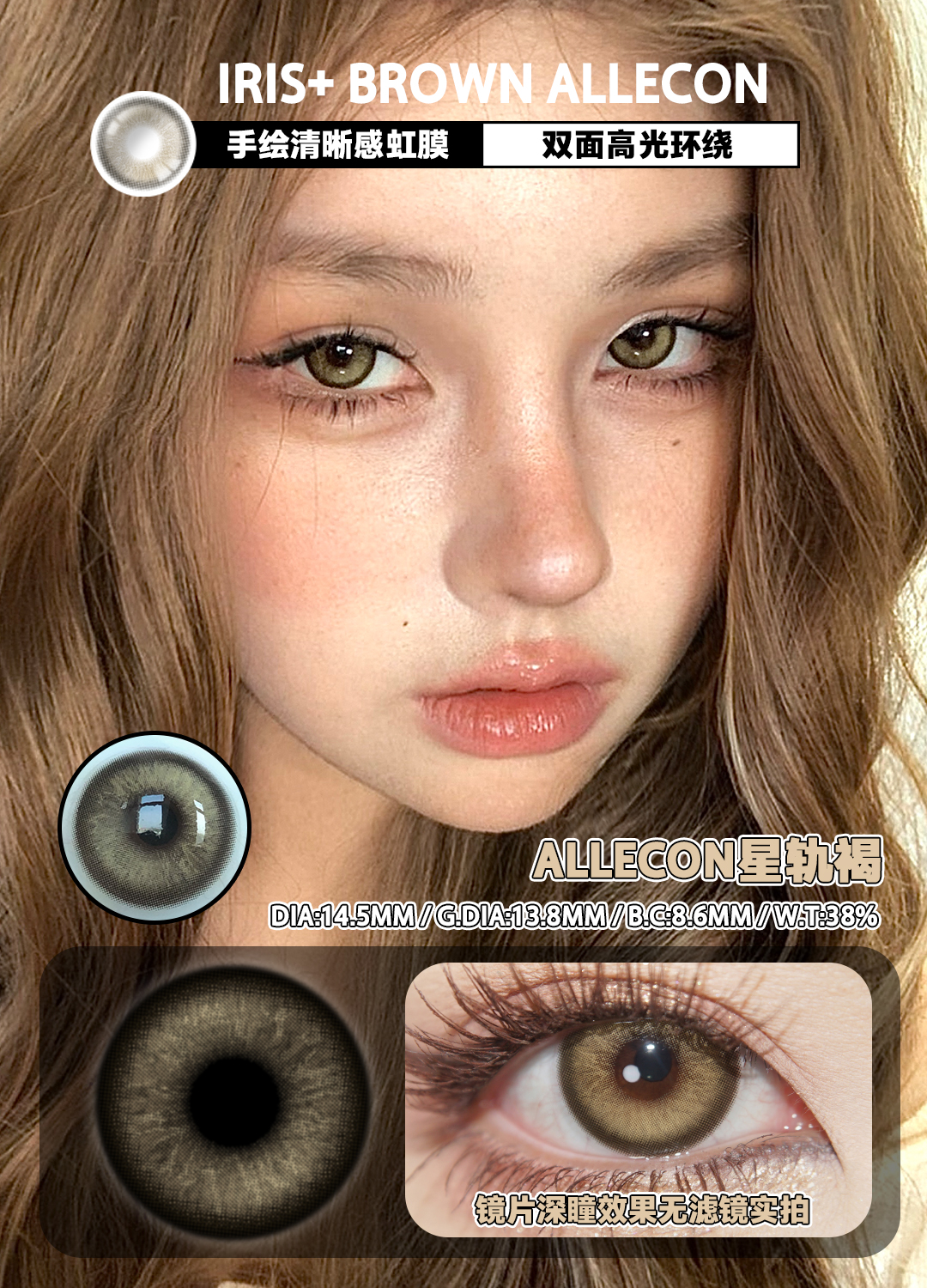 allecon年抛 冰晶蓝/灵毒绿/星轨褐 14.5mm 美瞳两片装 虹膜款 可能会遮挡视线