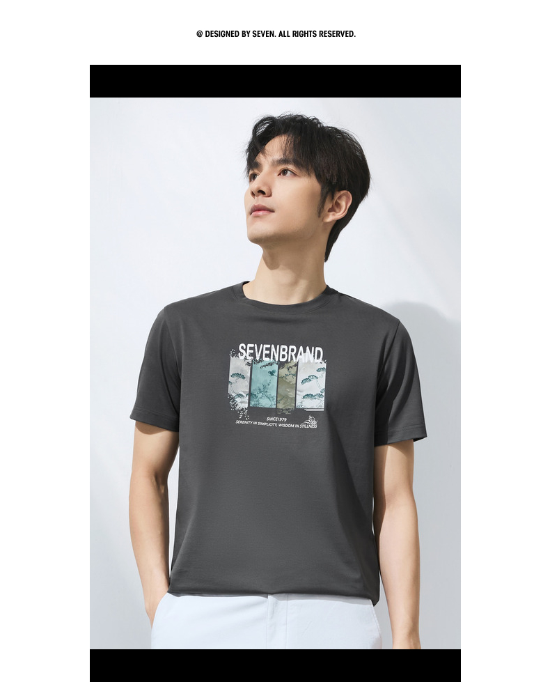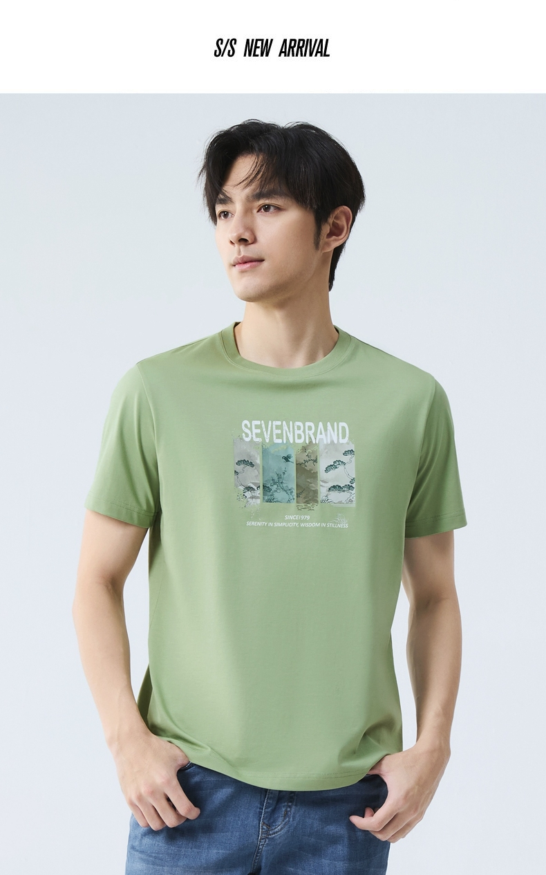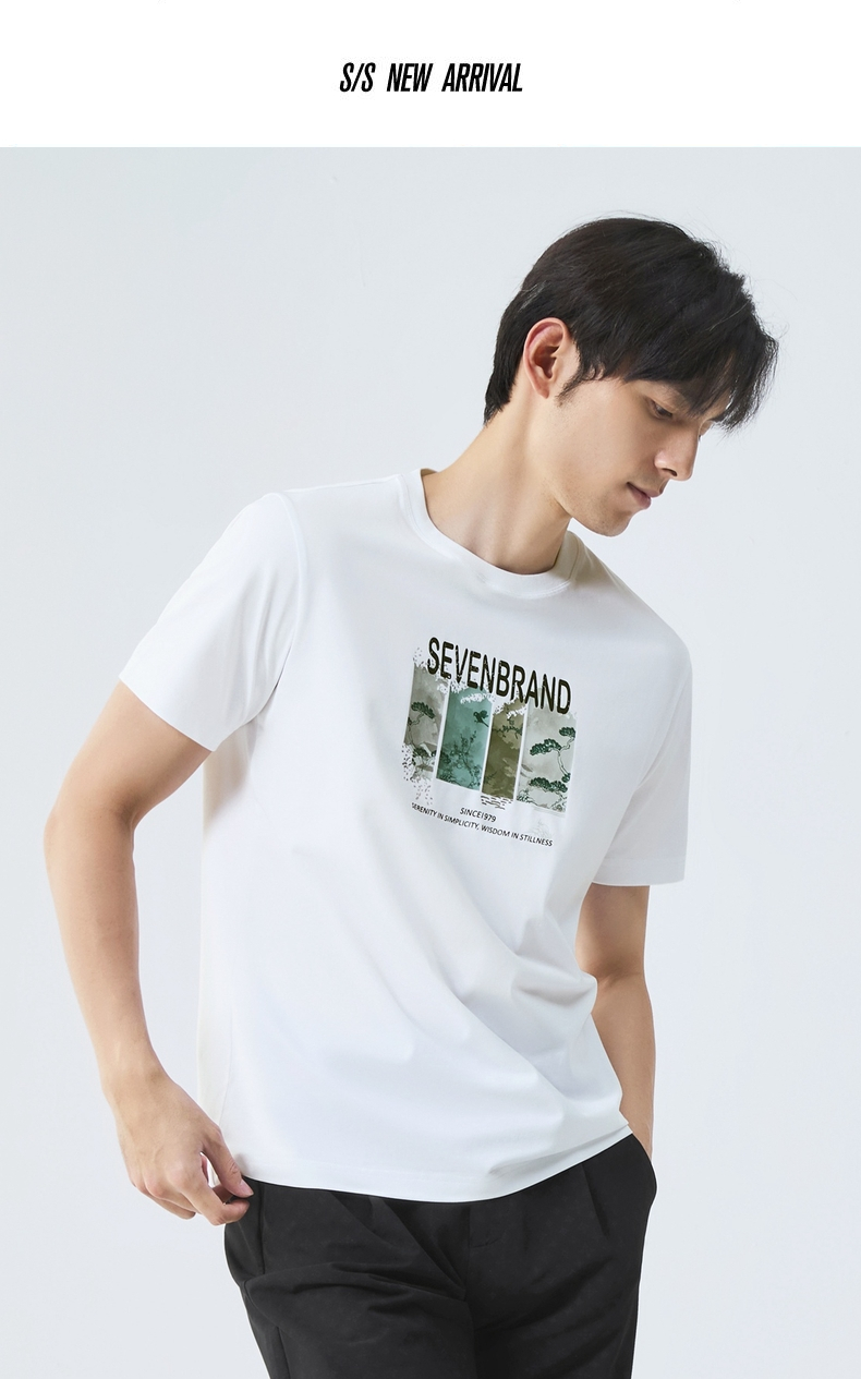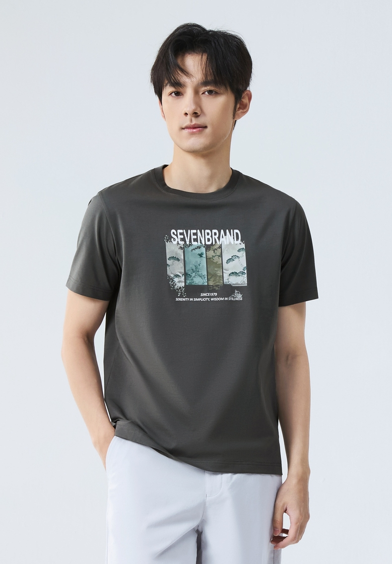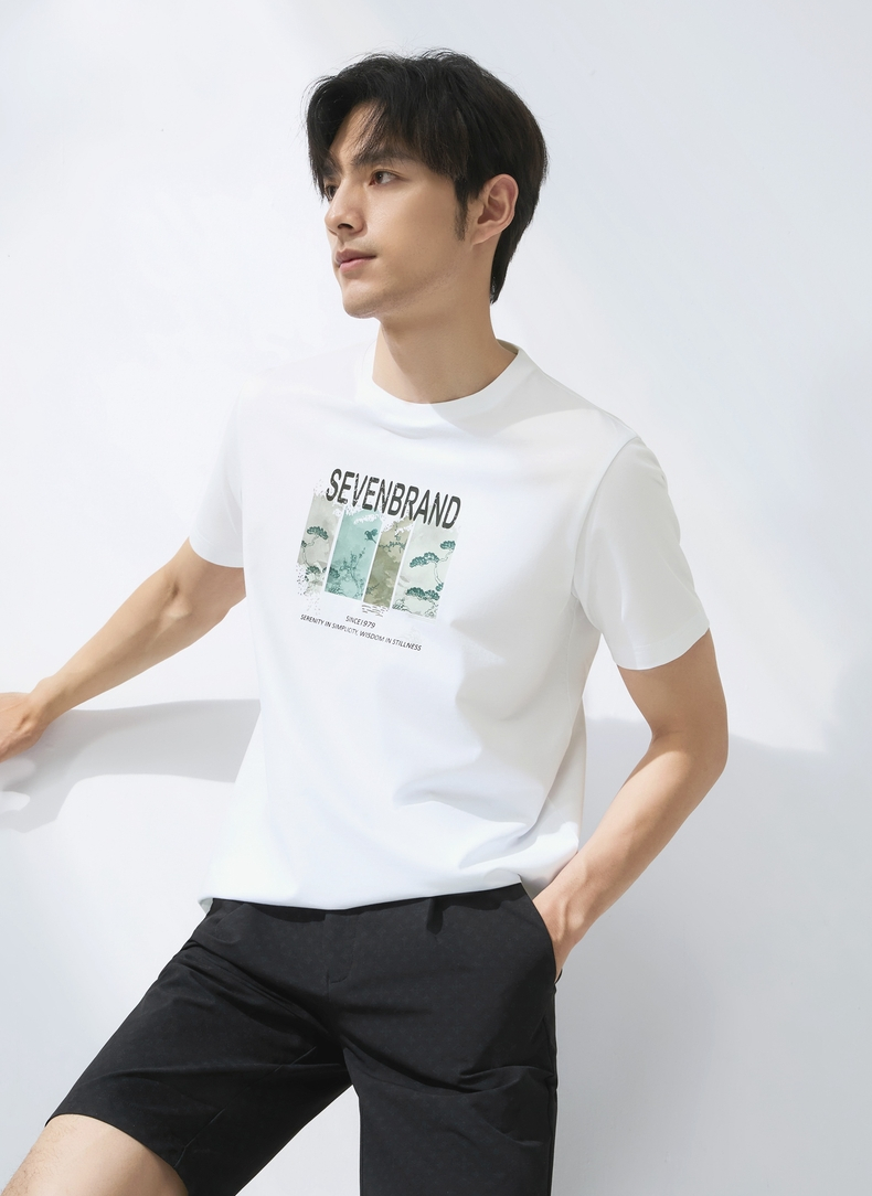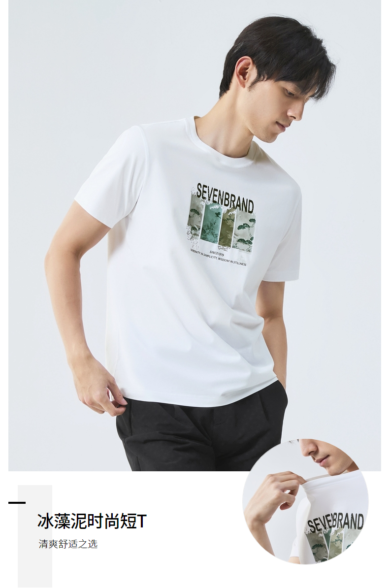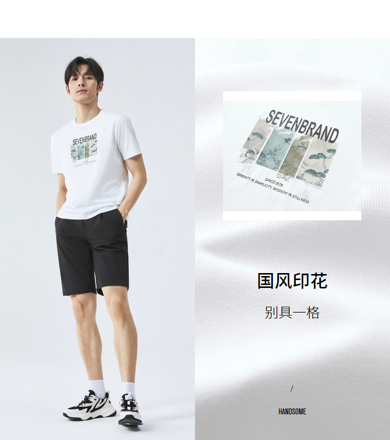 【国风图案T恤/凉感】柒牌7A抗菌短袖T恤男夏季新品印花圆领上衣