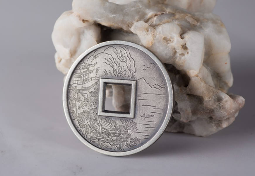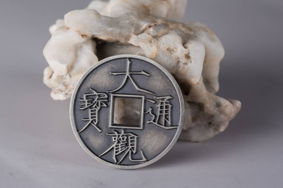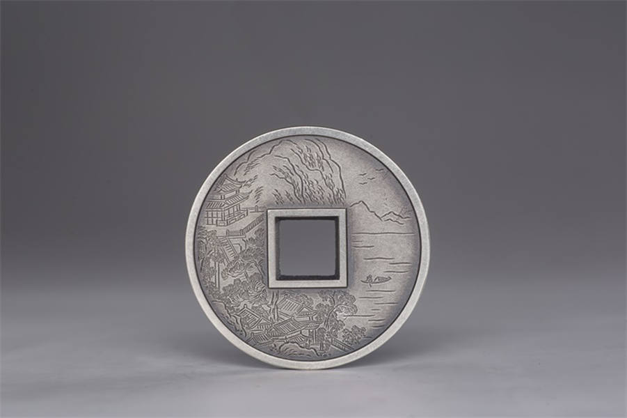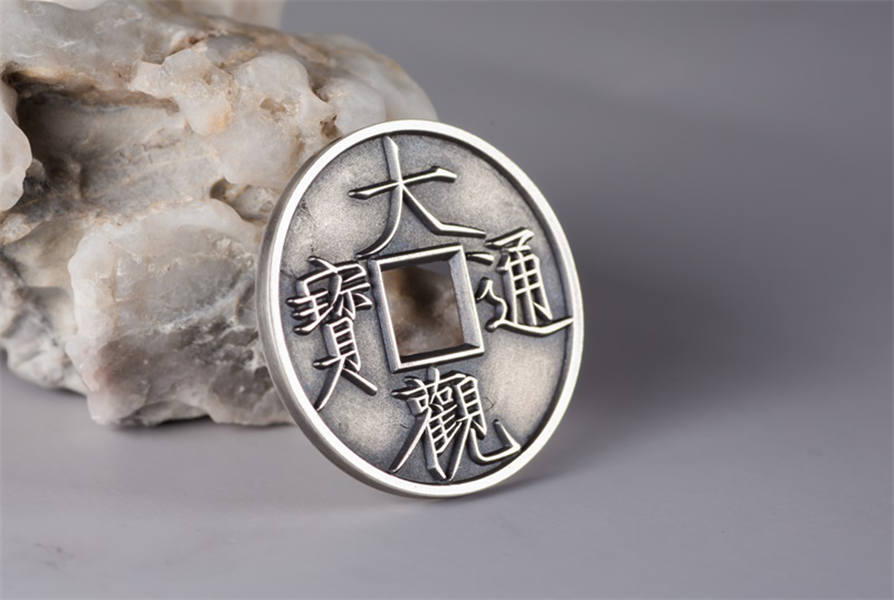 矩德泉坊 纯银手作 大观通宝背刻花版(3.8厘米版)gq201000031