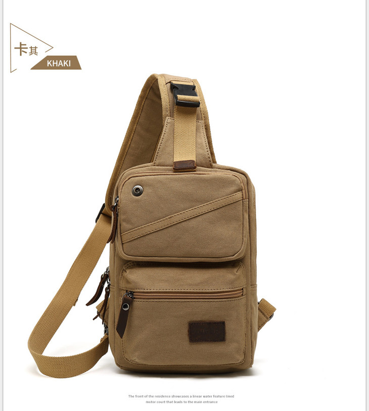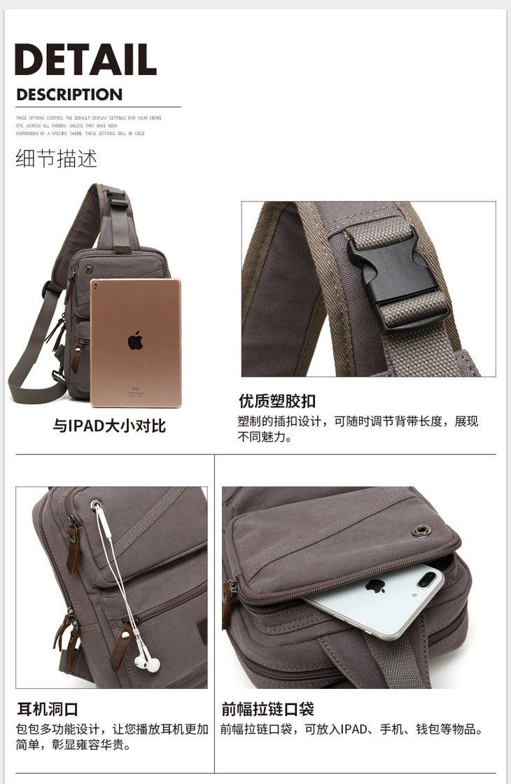 翱格新款帆布包 男士胸包 韩版斜挎小包运动耳孔线单肩包